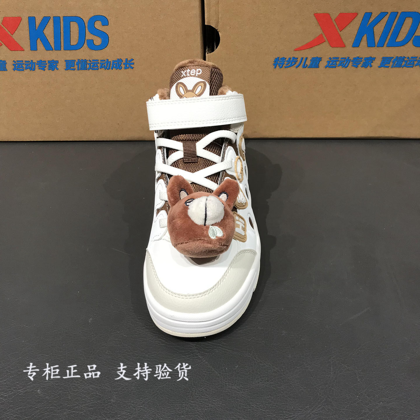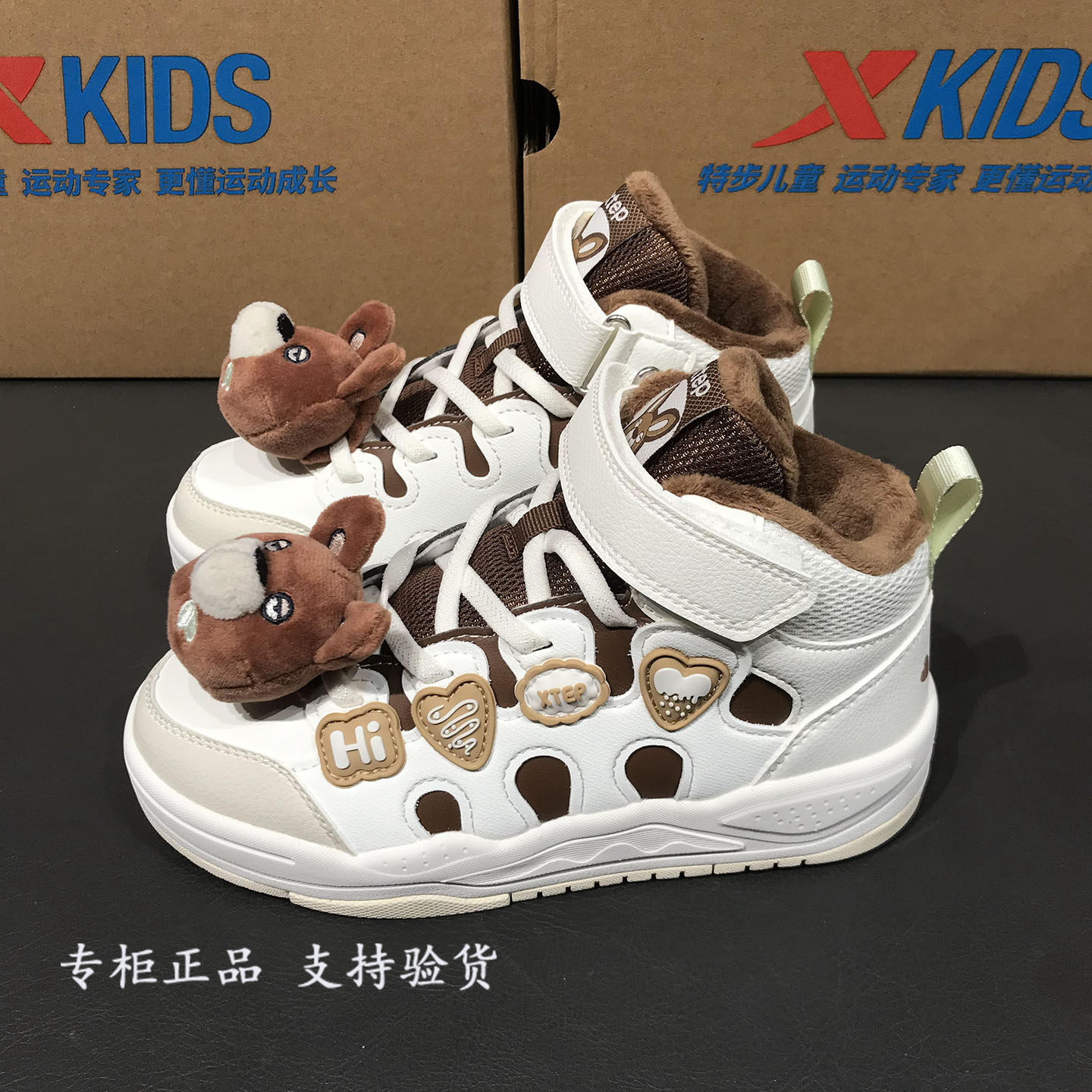 特步儿童2025冬季女大童户外加绒高邦运动板鞋二棉鞋675414374021