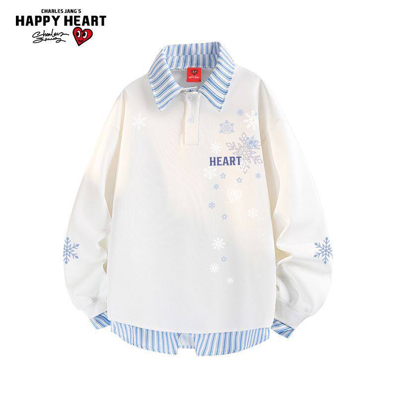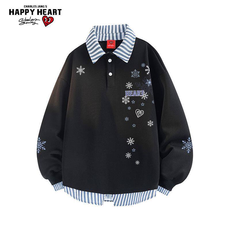 311线报网描述:查尔斯桃心雪花印花衬衫领卫衣男女春秋季新