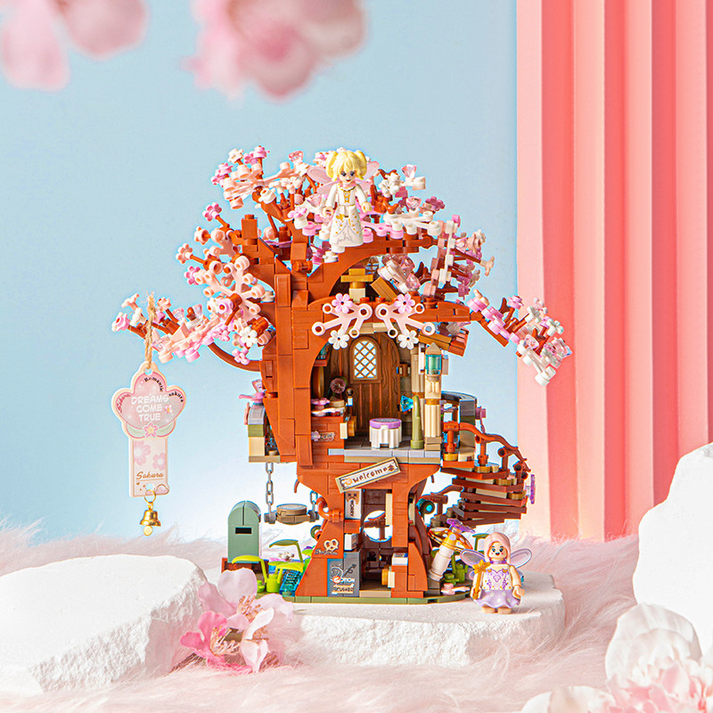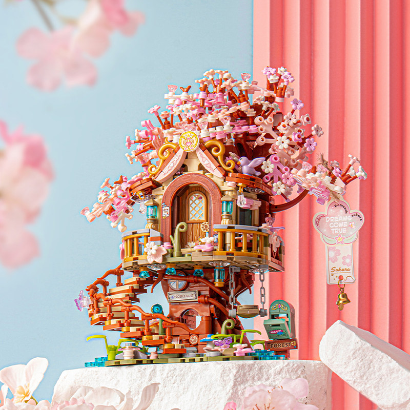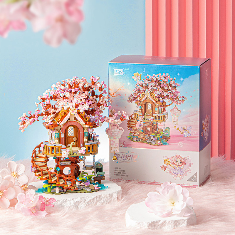 LOZ俐智积木樱花树屋大型摆件玩具拼装高难度迷你颗粒女生礼物