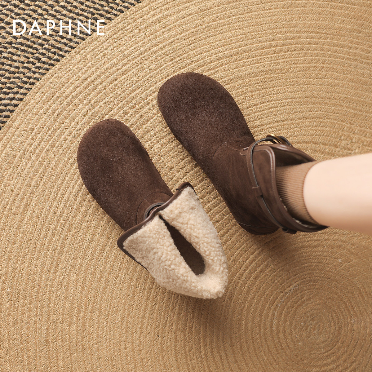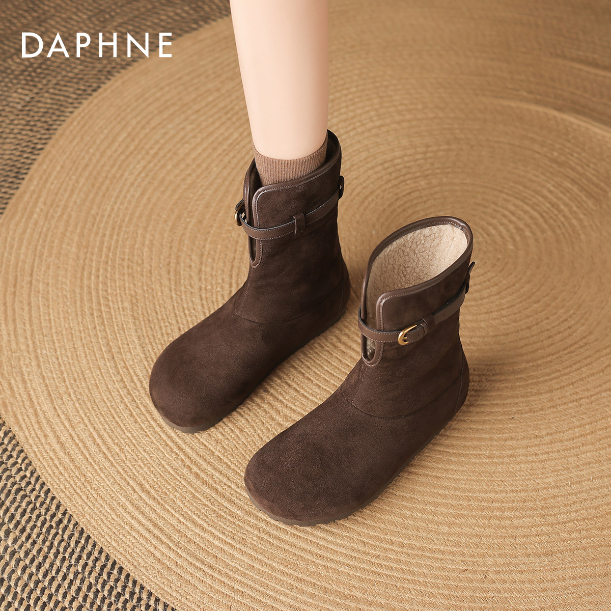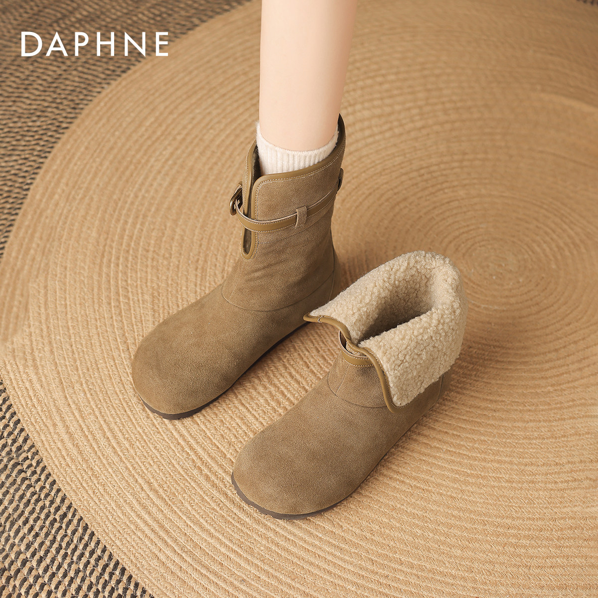 达芙妮雪地靴女款2026新款冬季保暖棉鞋加绒平底勃肯短靴毛毛棉靴