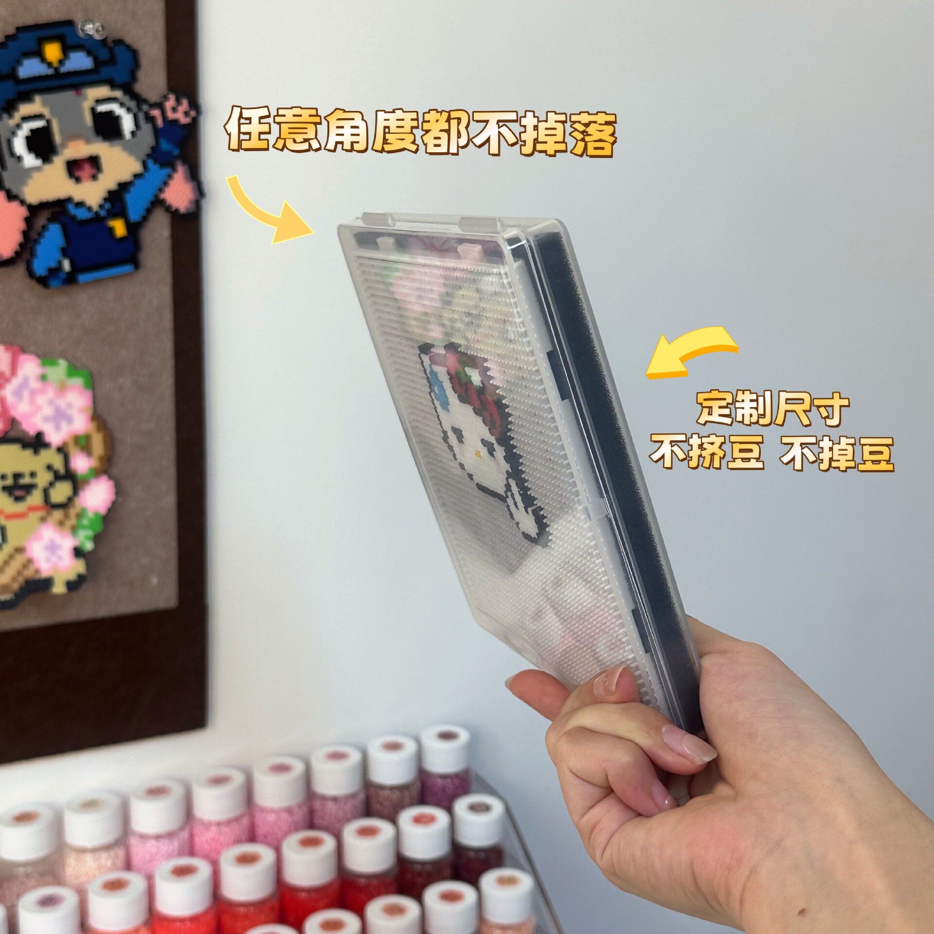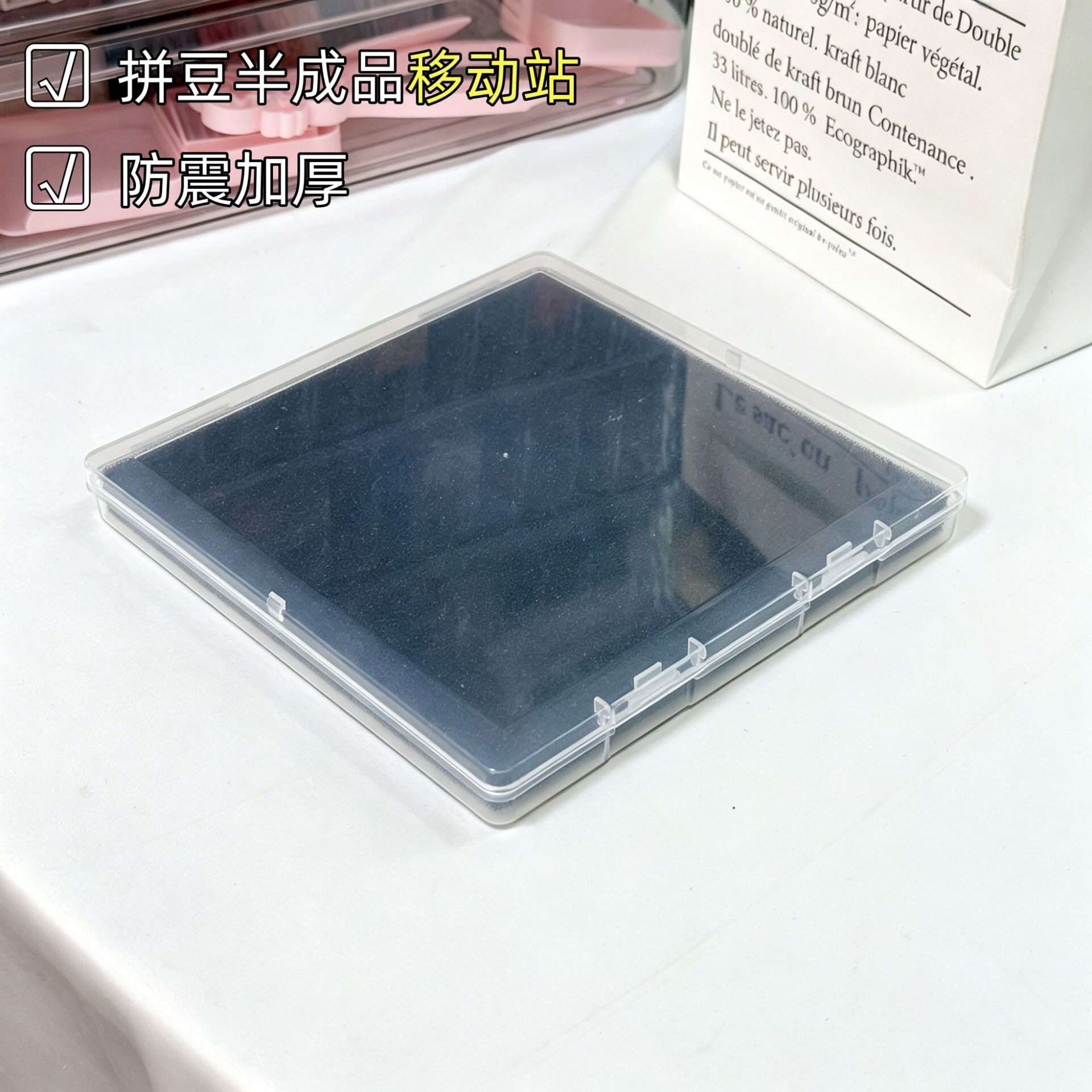 拼豆暂停盒正方形豆板成品收纳盒拼豆保护盒透明翻盖透明盒52钉72