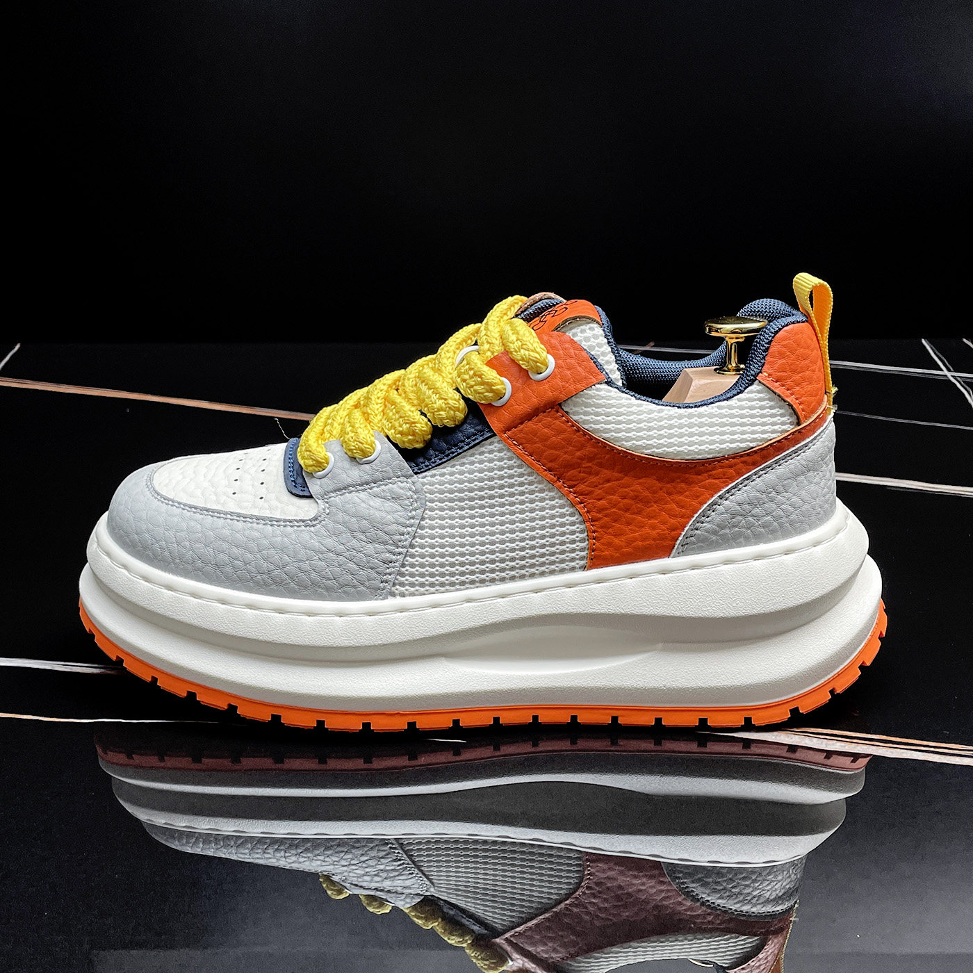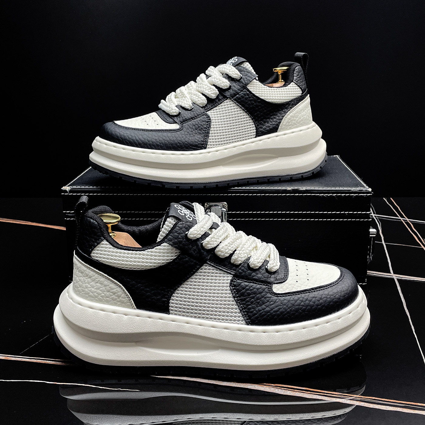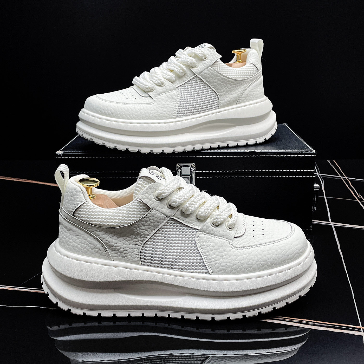 厚底小白鞋男2026夏季透气网面板鞋高级感痞帅潮牌男鞋百搭休闲鞋