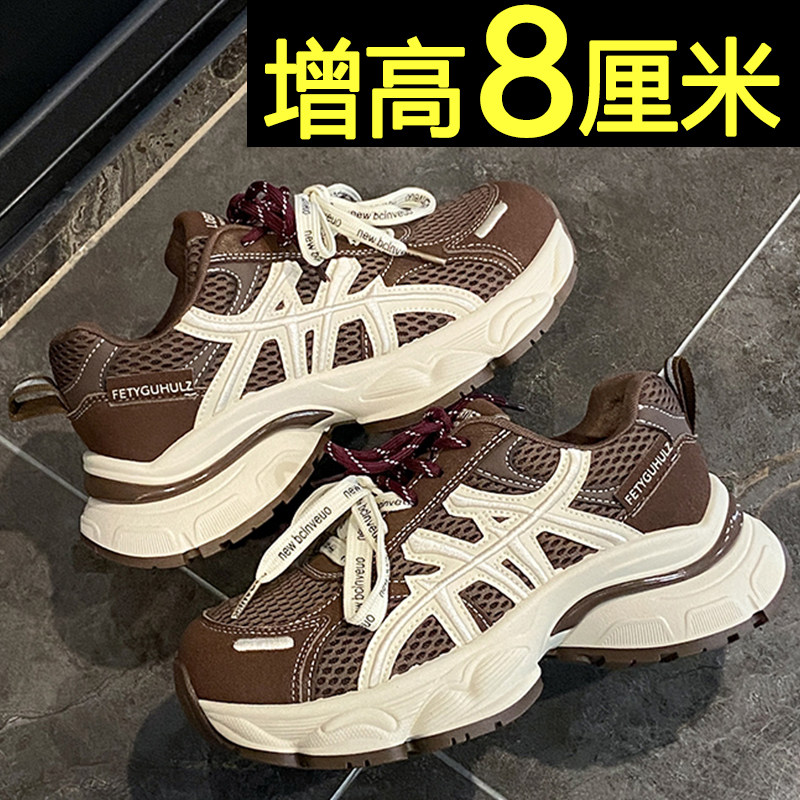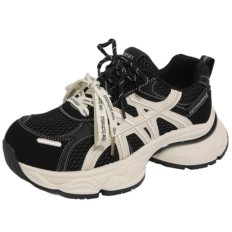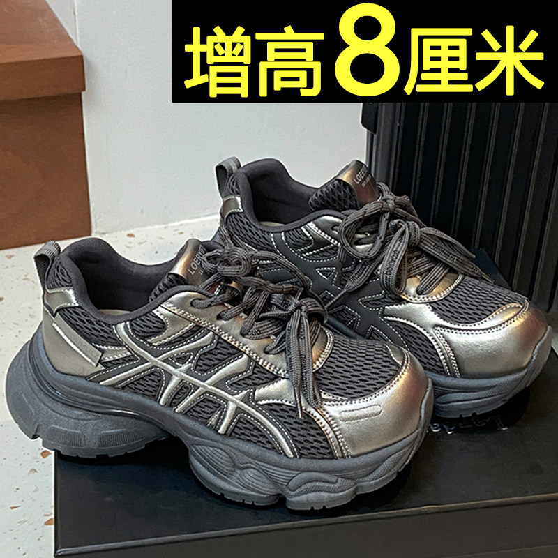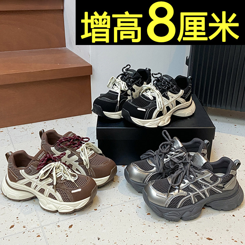 厚底黑色运动鞋女款2026新款秋季网面内增高休闲鞋轻便百搭老爹鞋