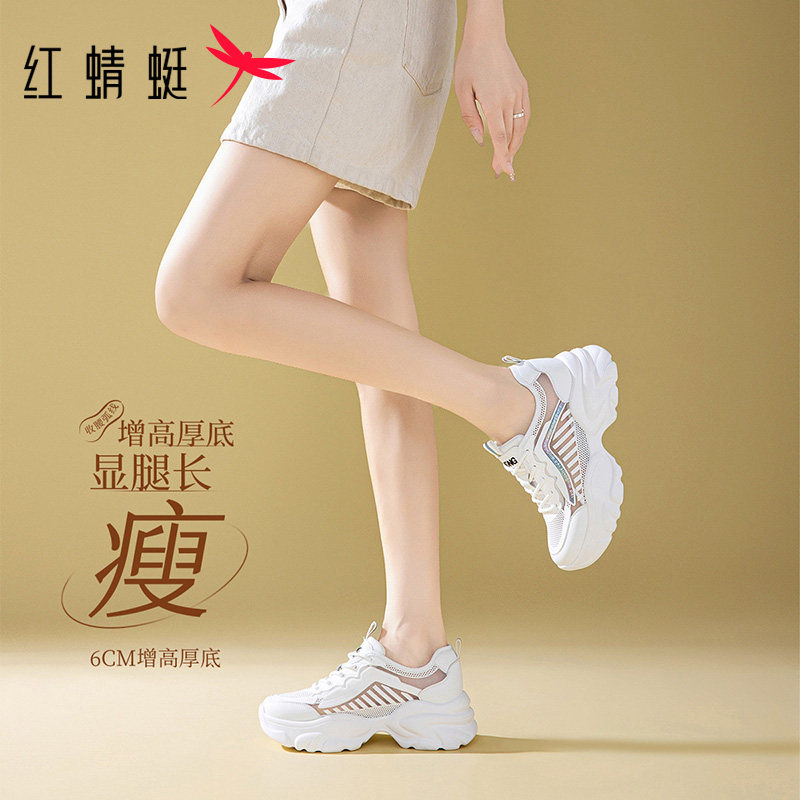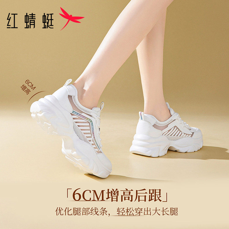 红蜻蜓女鞋夏季2025新款厚底透气网面薄款老爹鞋增高轻便运动鞋女