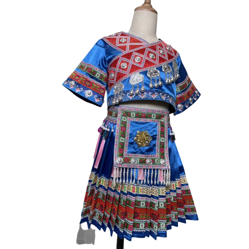 新款儿童少数民族服装三月三女童成人舞蹈演出服黛帕苗族表演舞蹈