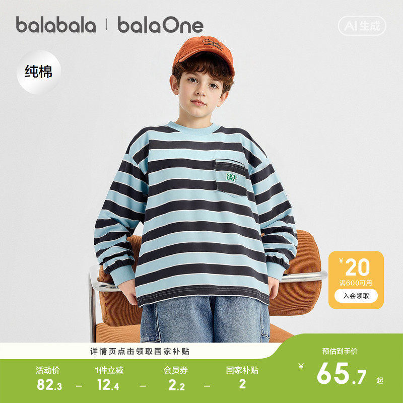 巴拉巴拉童装儿童长袖t恤男童2026春季新款上衣女童条纹速干衣服
