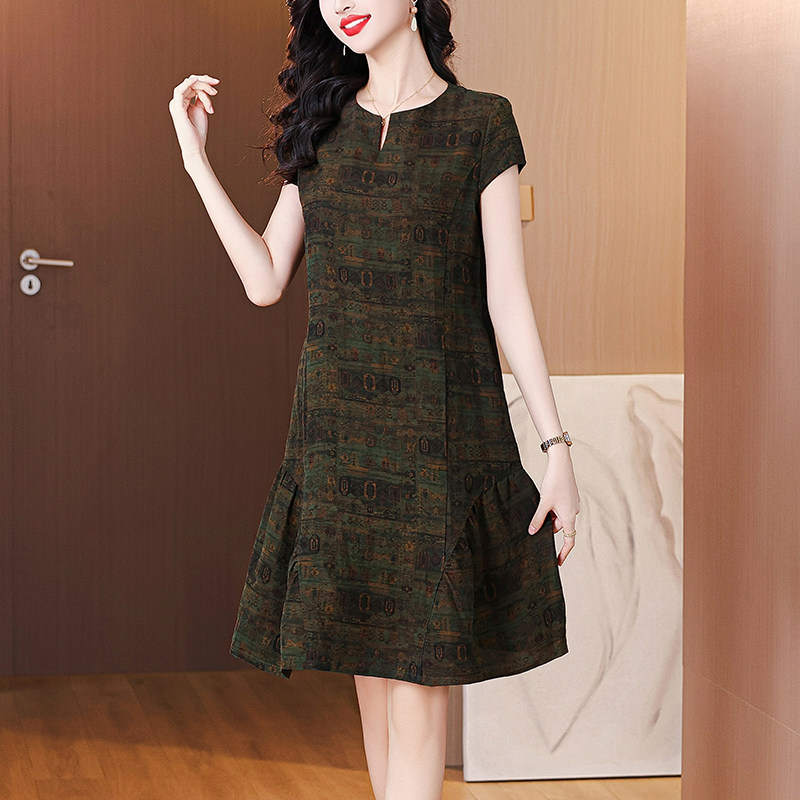 香云纱真丝连衣裙女2025夏季新款小个子妈妈中长款复古桑蚕丝裙子