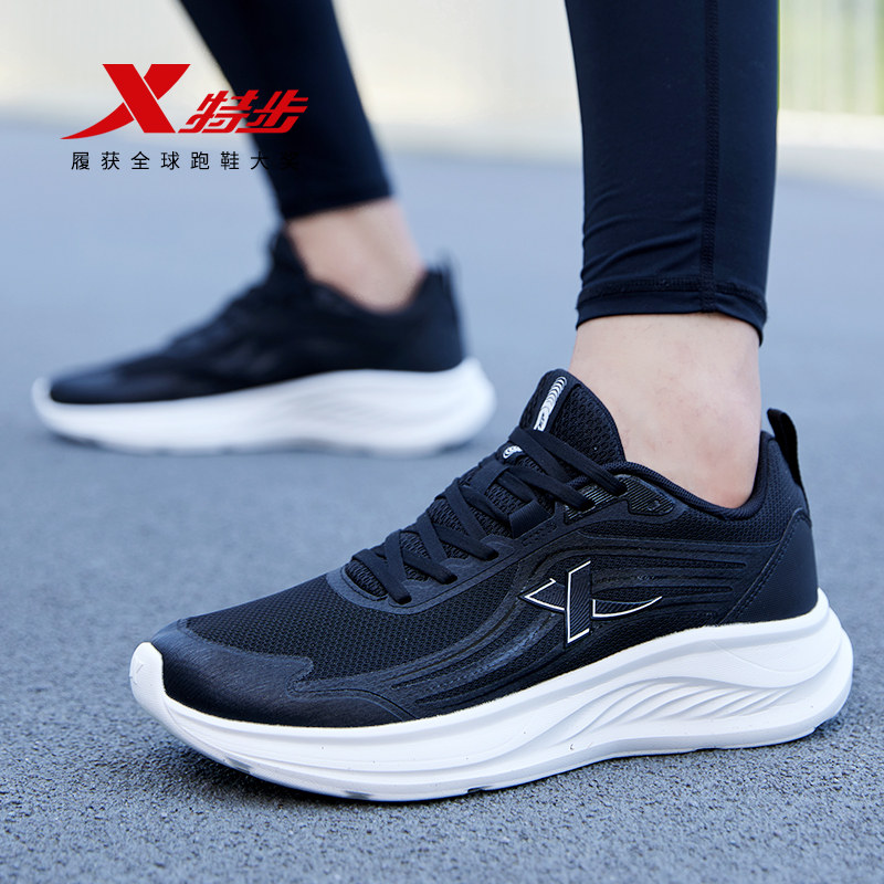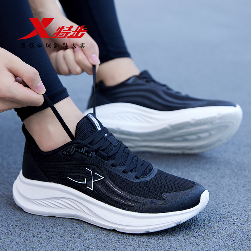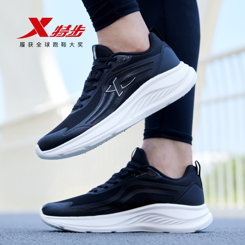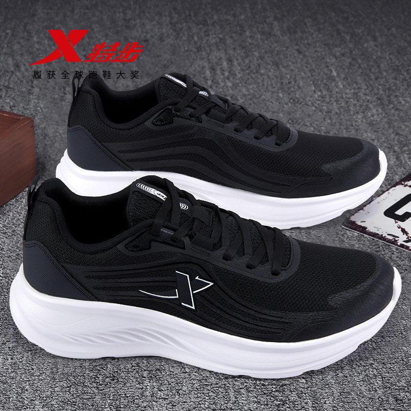 特步男鞋2026新款春季中年爸爸运动鞋父亲黑色网面透气薄款跑步鞋