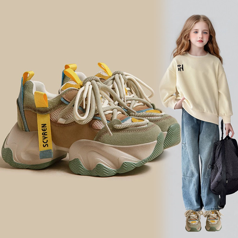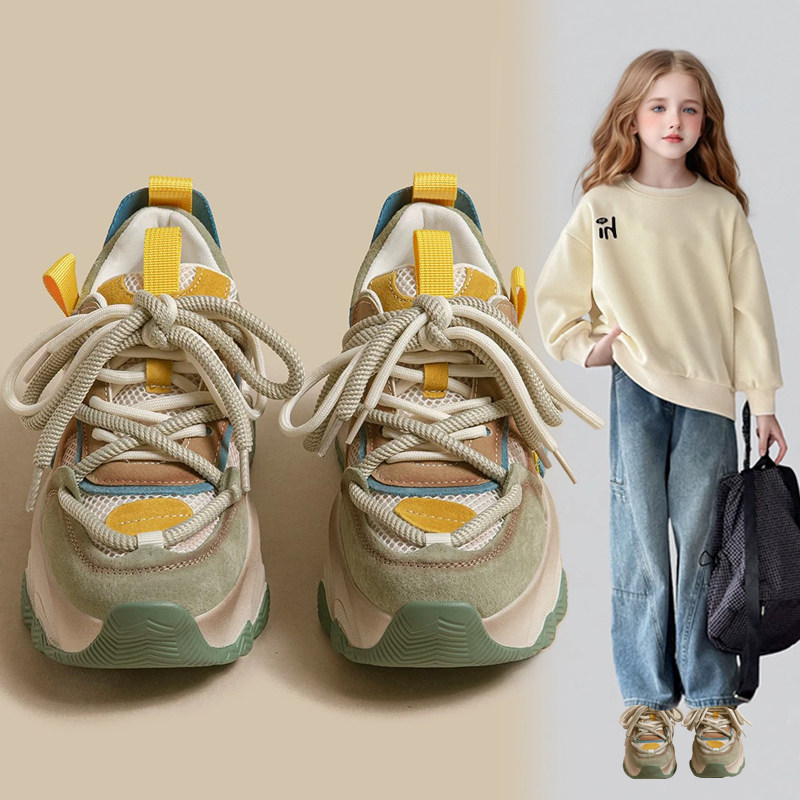 女童老爹鞋2026年春秋季新款女孩运动鞋中大童百搭魔术贴休闲童鞋