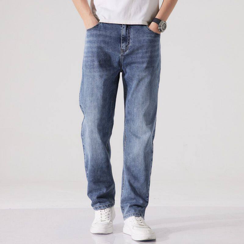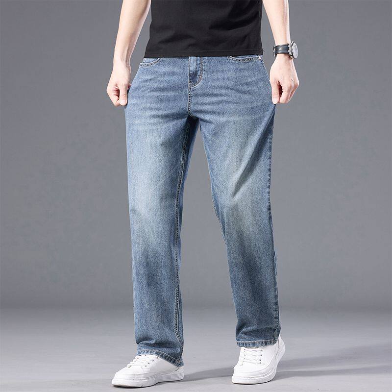 香港高端浅蓝色牛仔裤男2026新款宽松直筒男裤春夏季冰丝薄款长裤
