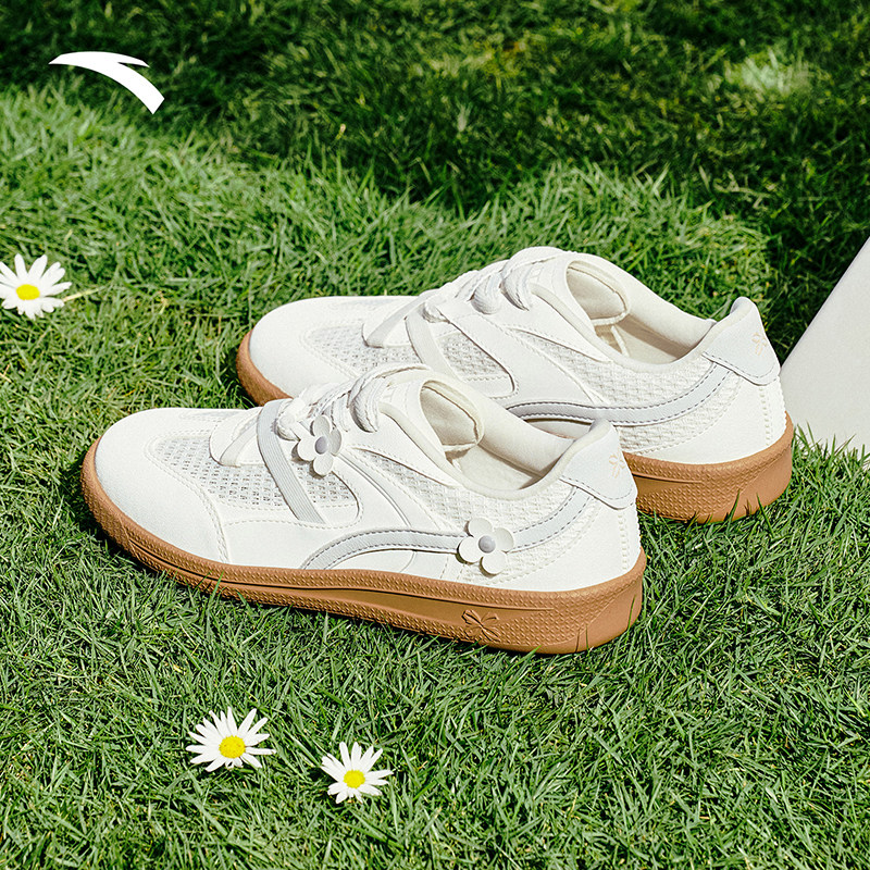安踏女鞋小白花丨经典薄底德训鞋女透气平底板鞋运动鞋122628036