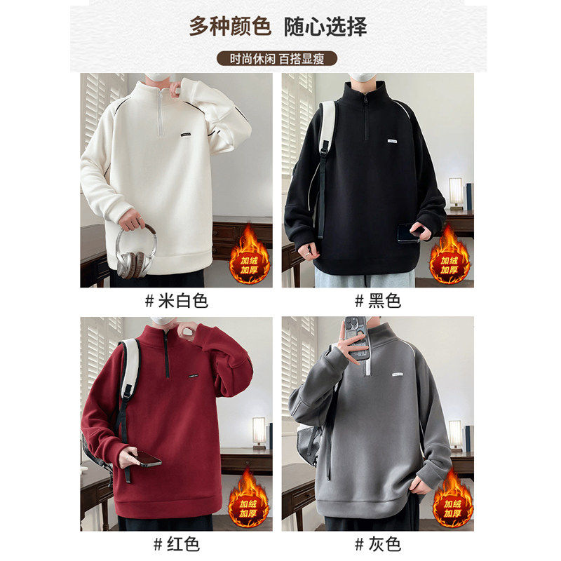 双面奥粒绒青少年红色卫衣男款秋冬款加绒加厚半高领半拉链初中生
