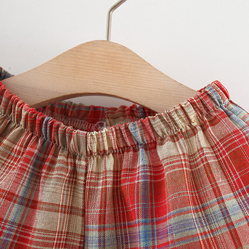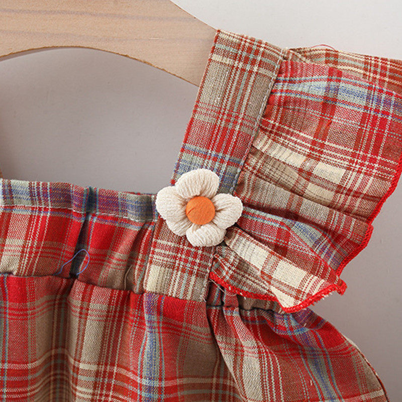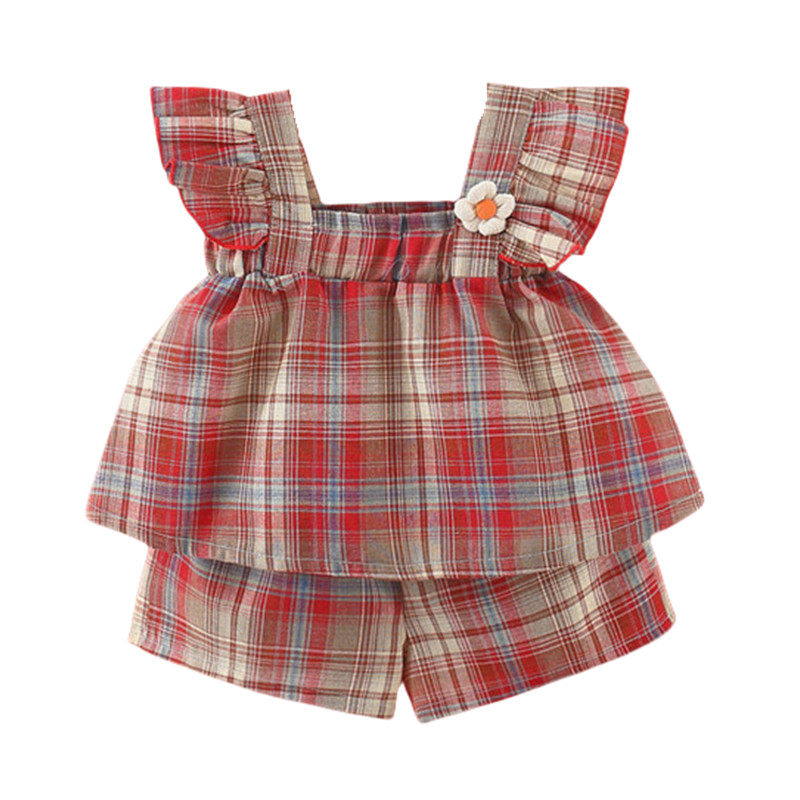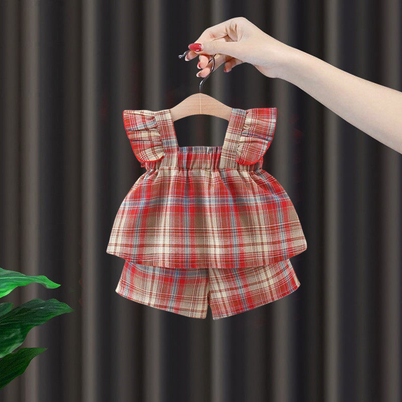 女童夏季薄款套装婴儿2026格子小飞袖洋气时髦吊带小公主两件套潮