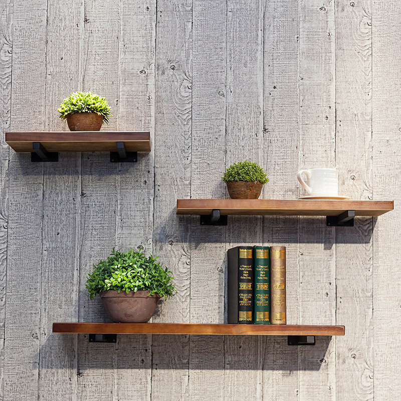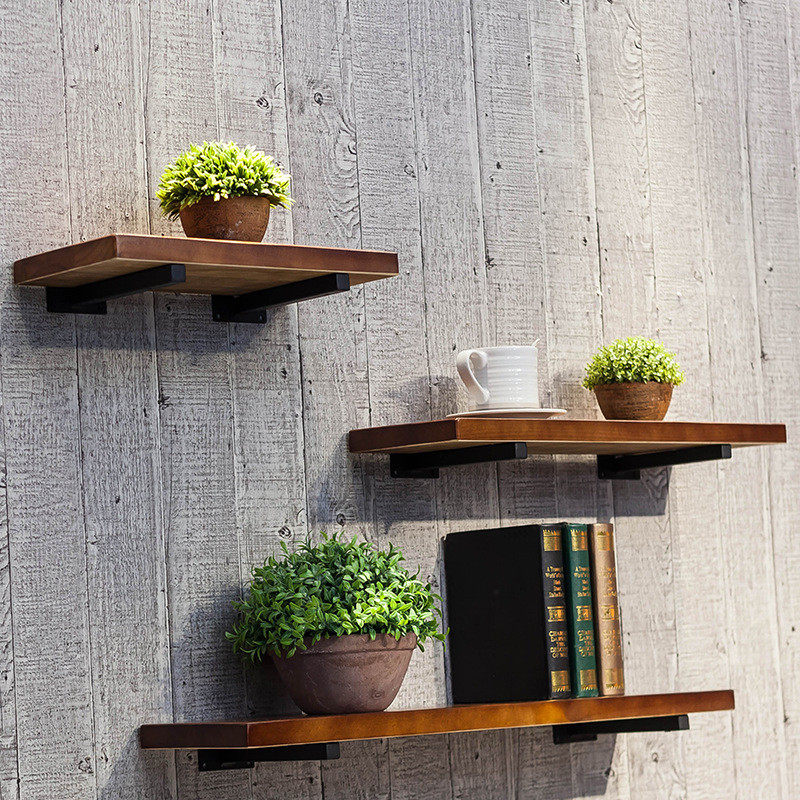 铁木花架墙上壁挂一字隔板置物架实木墙面置物架结合可以定制定做