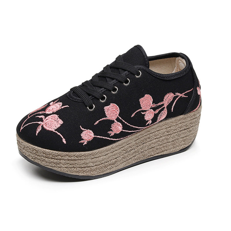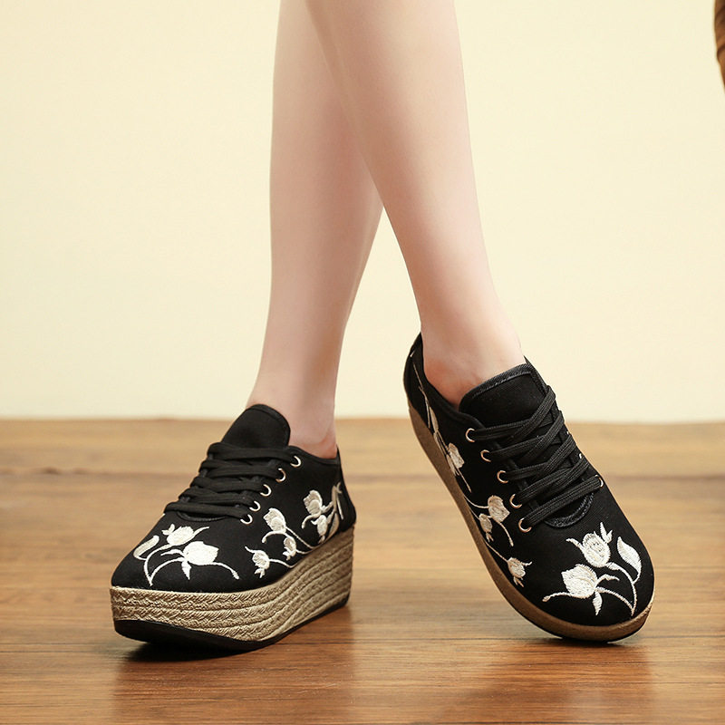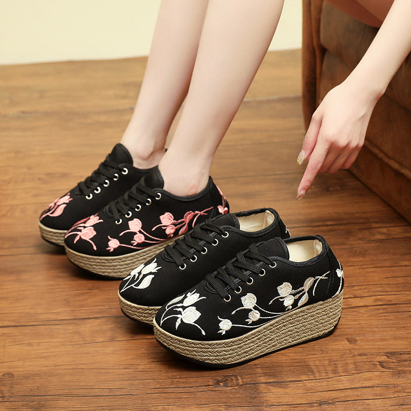 2026春秋新款女鞋爆款高跟时尚显瘦松糕底老北京厚底帆布休闲布鞋