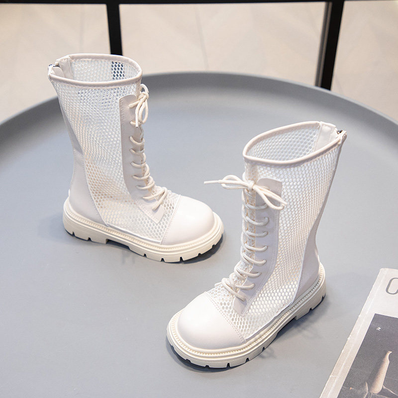 女童靴子夏季马丁靴女款儿童长筒靴夏透气薄款网面小女孩黑色鞋子