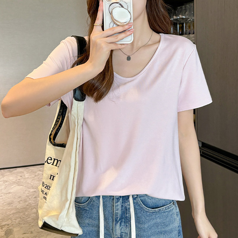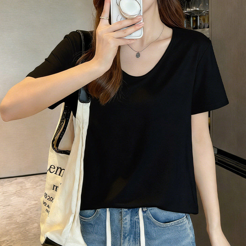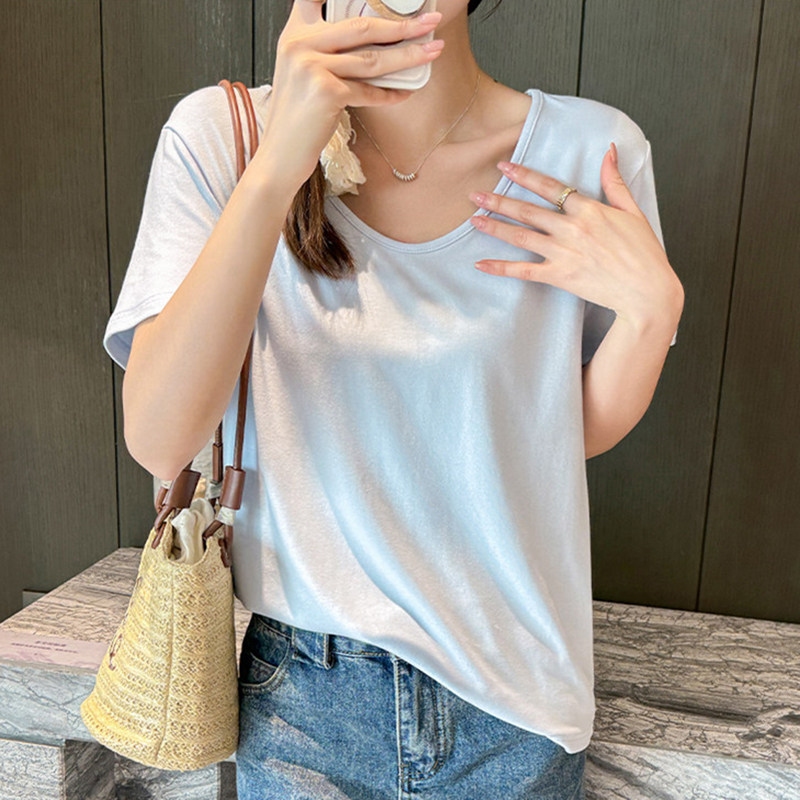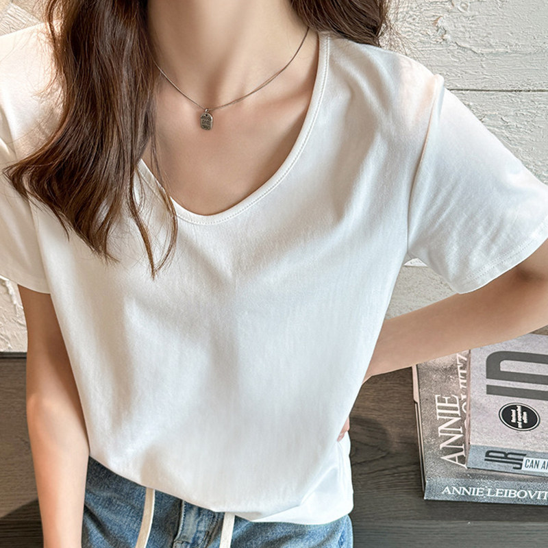 白色v领正肩短袖t恤女款2026年新款时尚洋气宽松显瘦遮肉上衣女