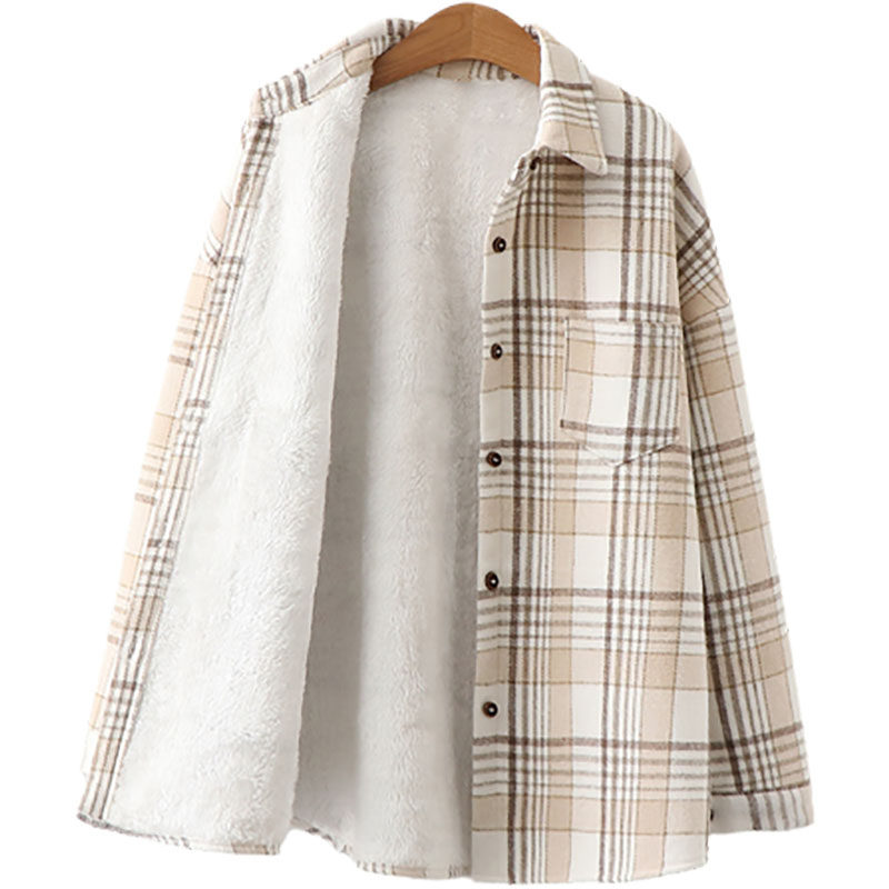 磨毛纯棉加绒加厚格子衬衫女款2026新款高级感上春秋保暖衬衣外套