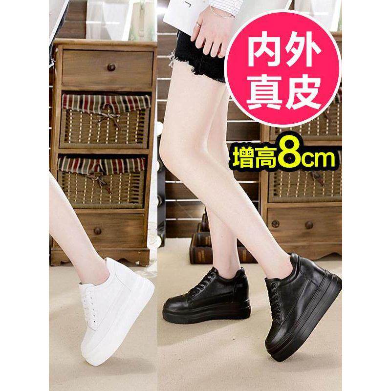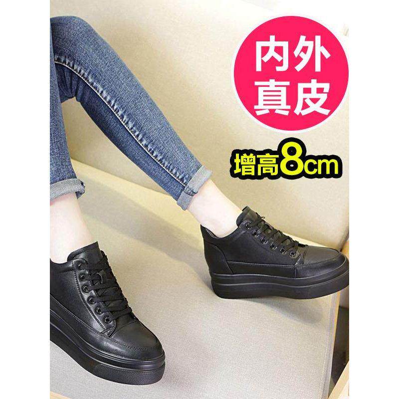 内增高女鞋8cm真皮显瘦松糕鞋厚底2025春季新款黑色百搭小白鞋女