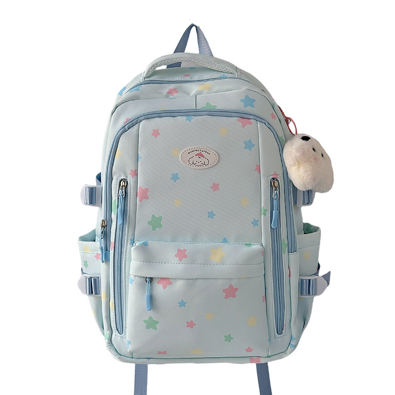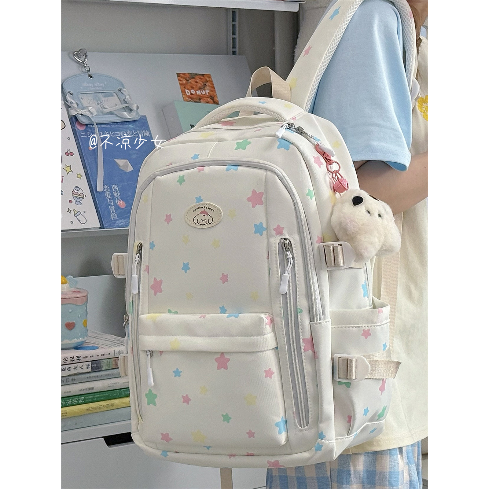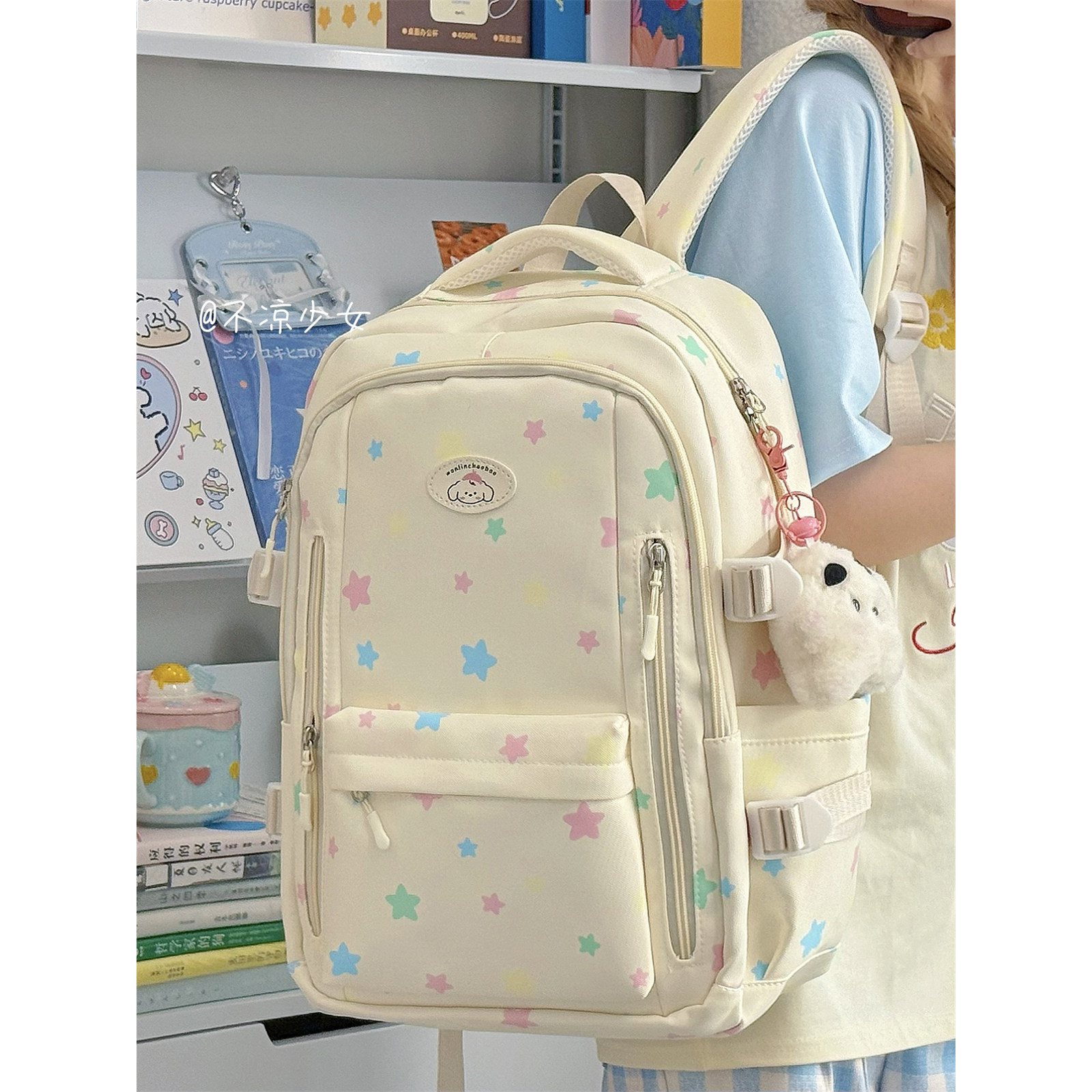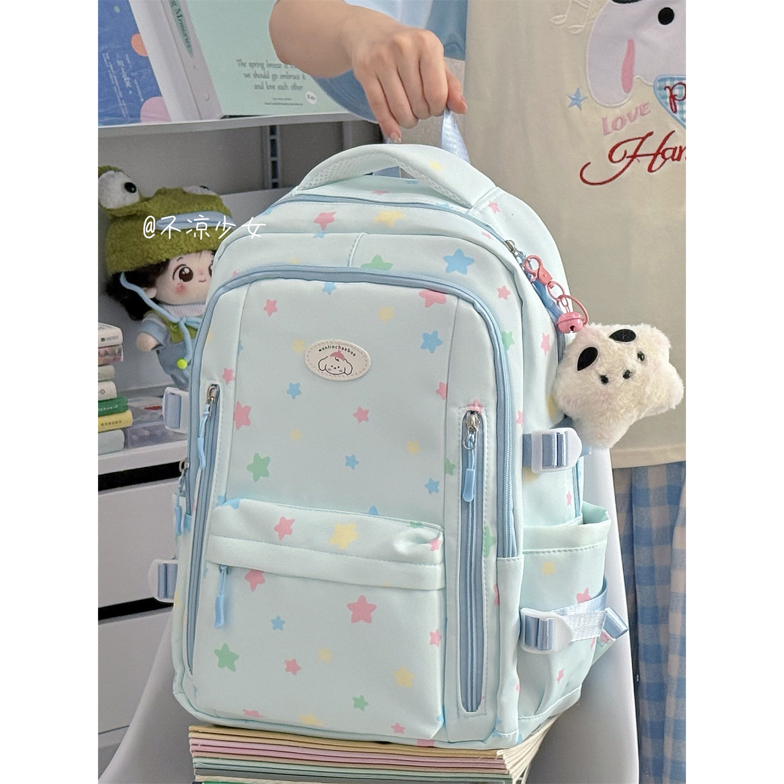 多隔层可爱星星初中生书包女高中学生大容量双肩包森系小清新背包