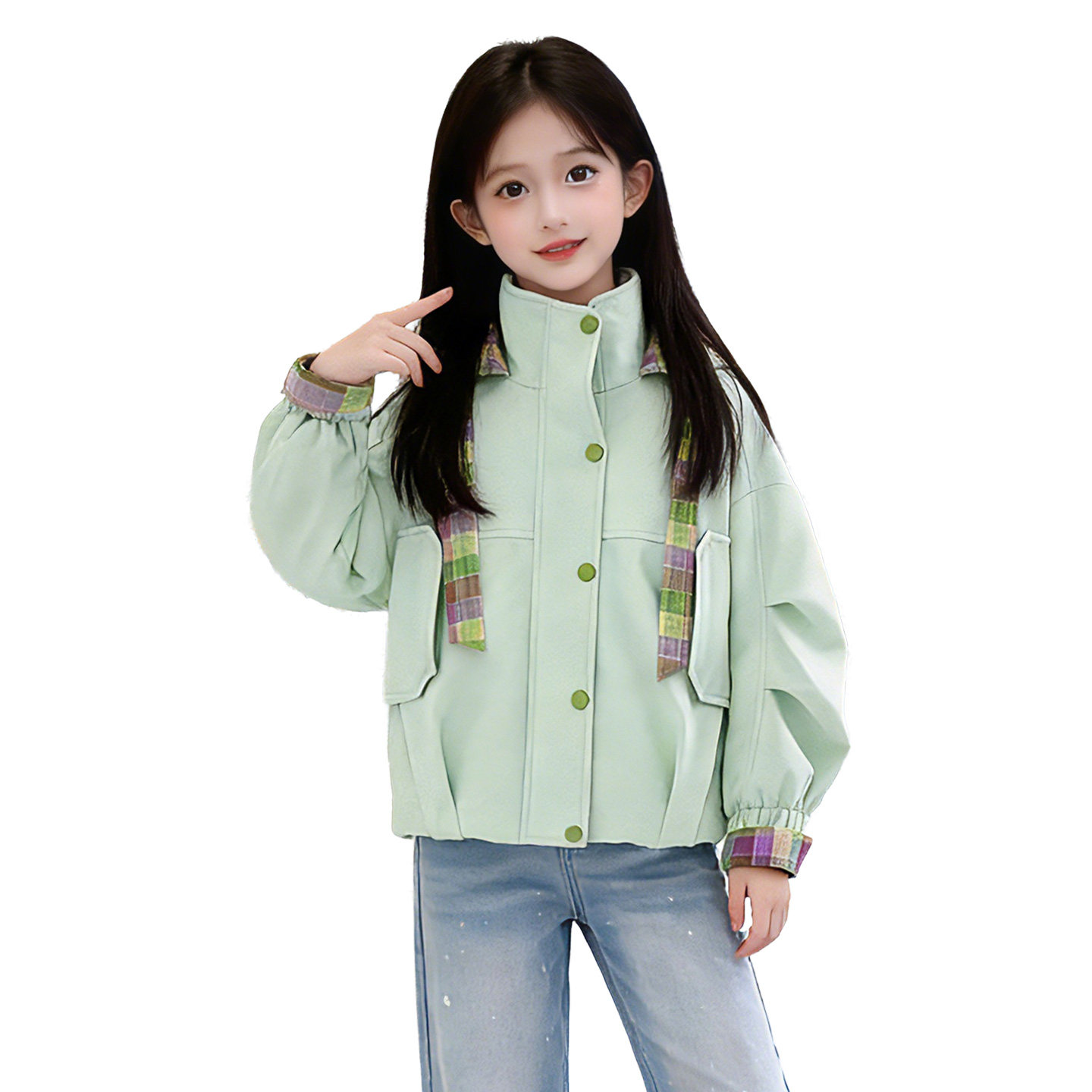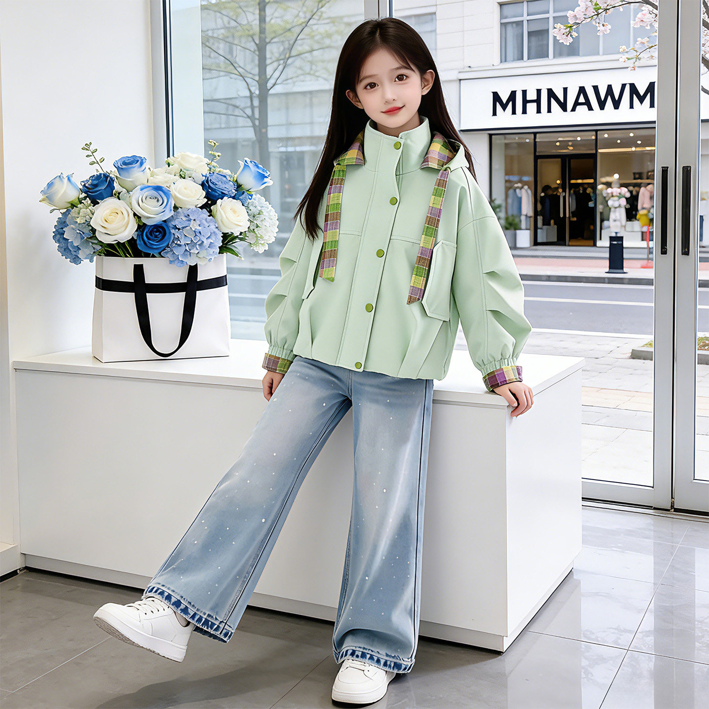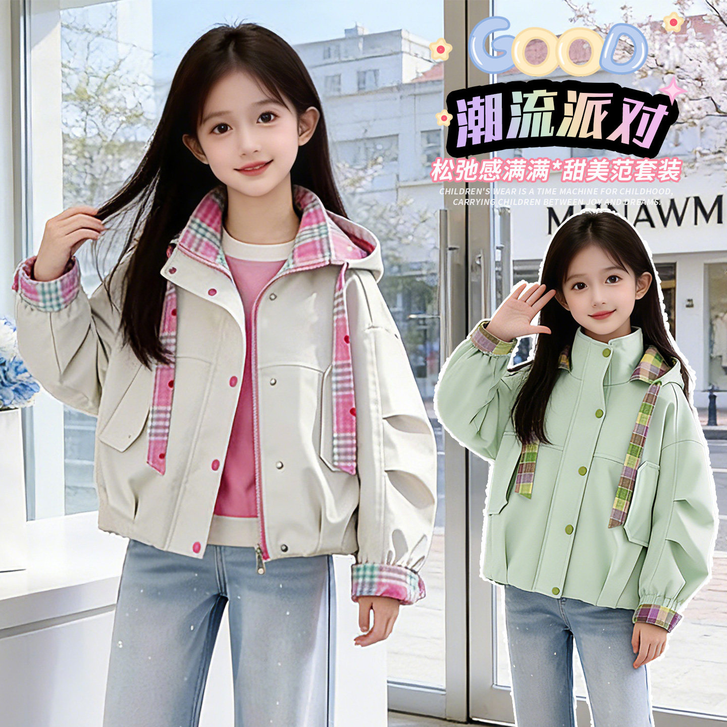 女童春装休闲外套2026新款洋气春秋冲锋衣初中生女孩运动夹克上衣