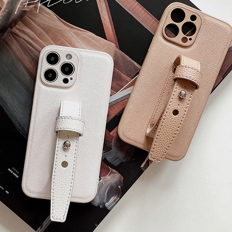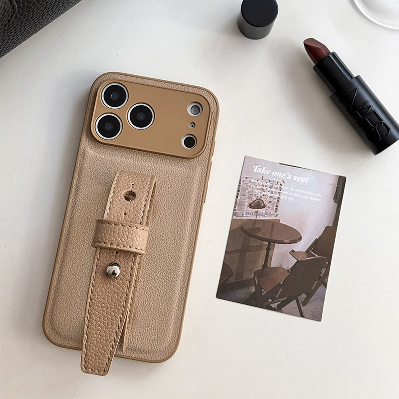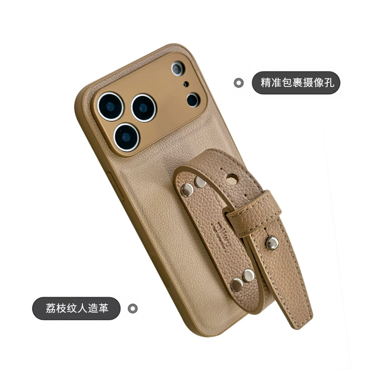 复古奶杏荔枝皮革精孔适用iphone17promax腕带手机壳温柔高级感苹果16系列保护套小众简约便携苹果15全包原创