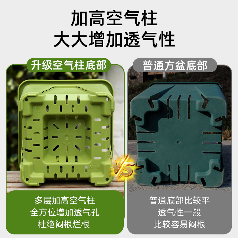 三代方形青山控根花盆塑料大口径透气树脂加仑花盆家用带托盘一体