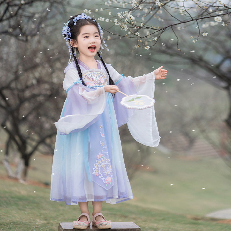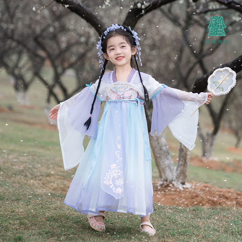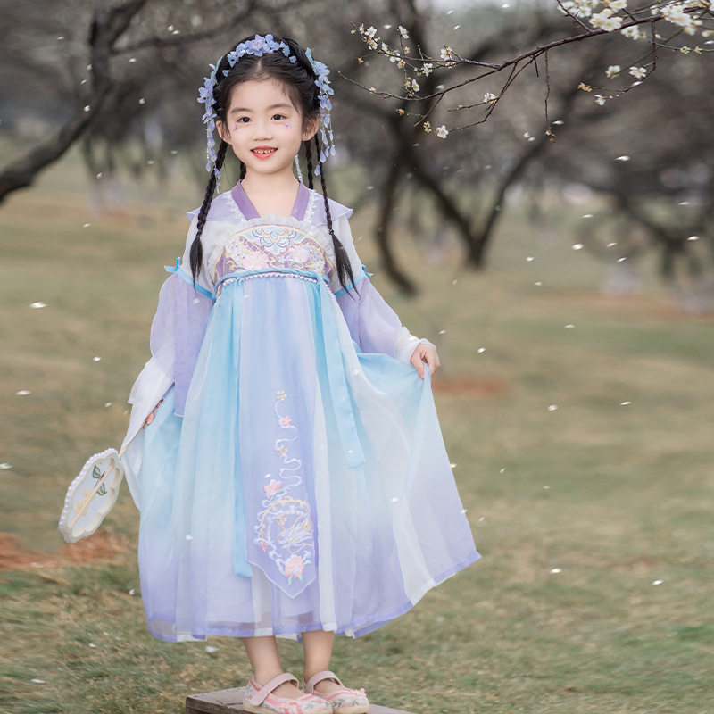 2024春款新品儿童汉服中大童古装长袖连衣裙女童国风襦裙