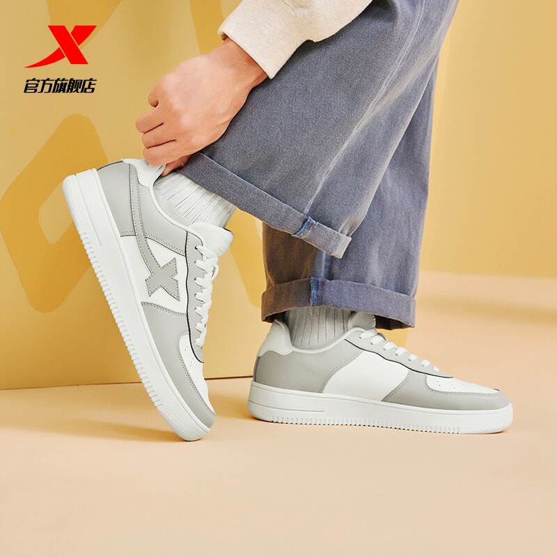 特步板鞋男2026新款官方旗舰轻便软底运动鞋皮面保暖百搭休闲鞋男