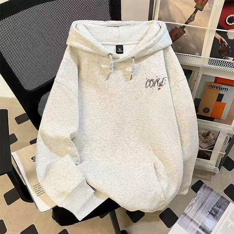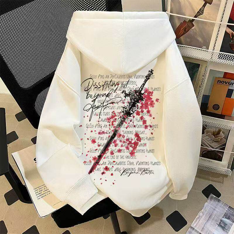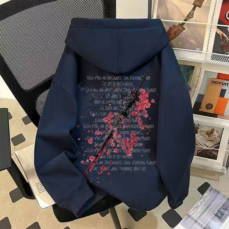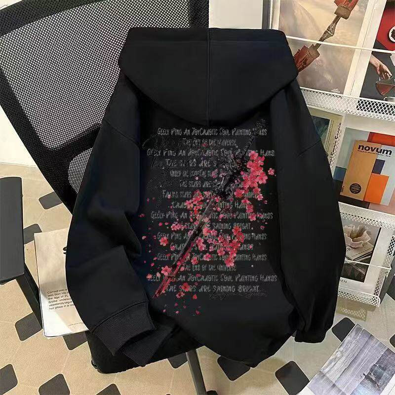 女童银狐绒潮流鲜花黑色剑字母印花连帽卫衣初中生秋冬宽松上衣潮
