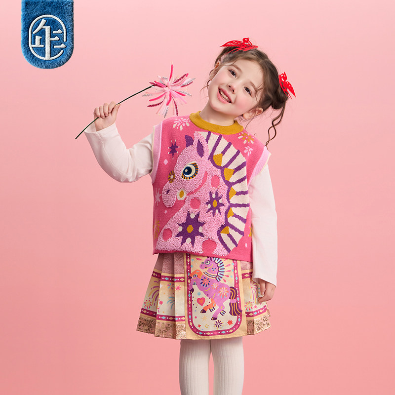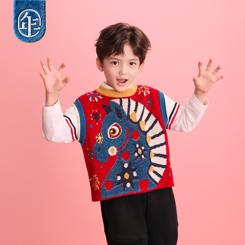 年衣童装儿童针织马甲秋冬新款男女童新中式上衣生肖过年马夹背心
