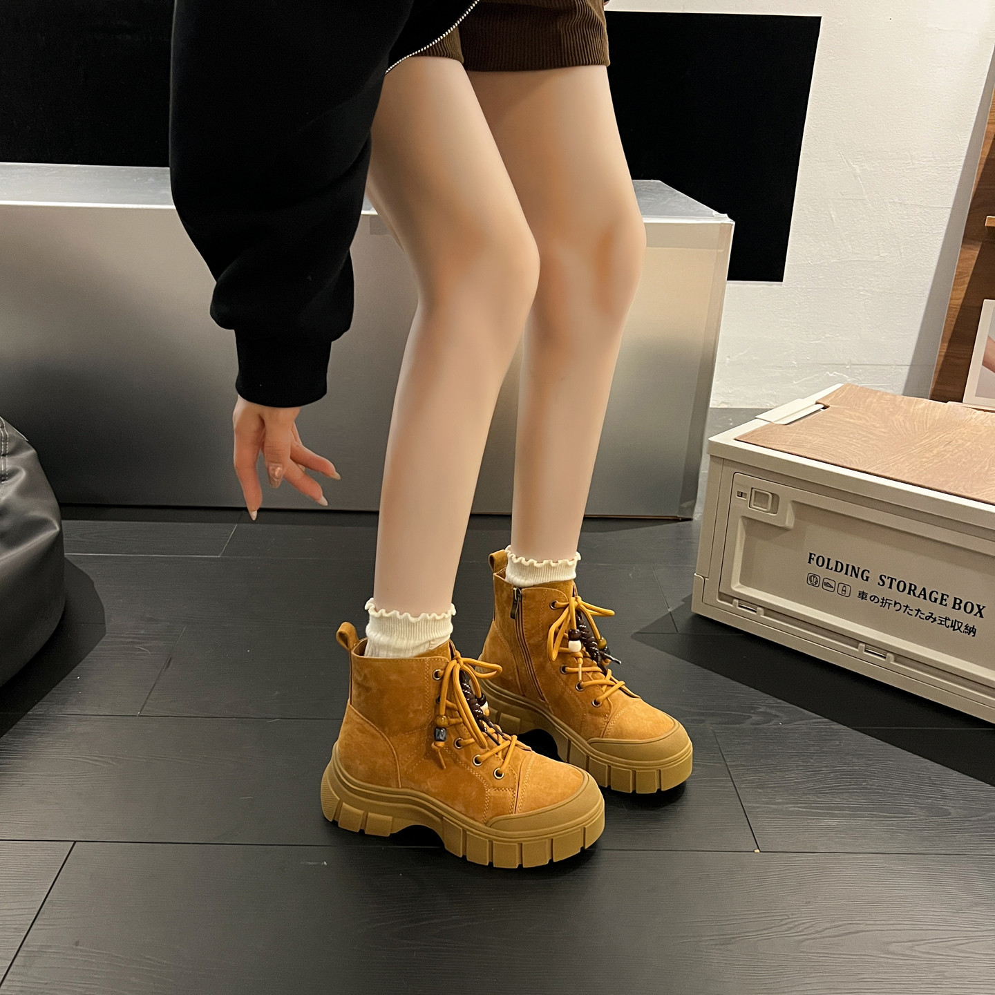 巨好看马丁靴女款2026年新款小个子短靴户外英伦风厚底内增高靴子