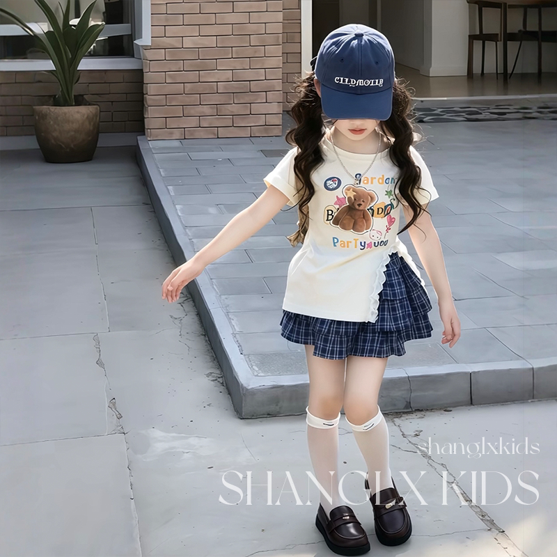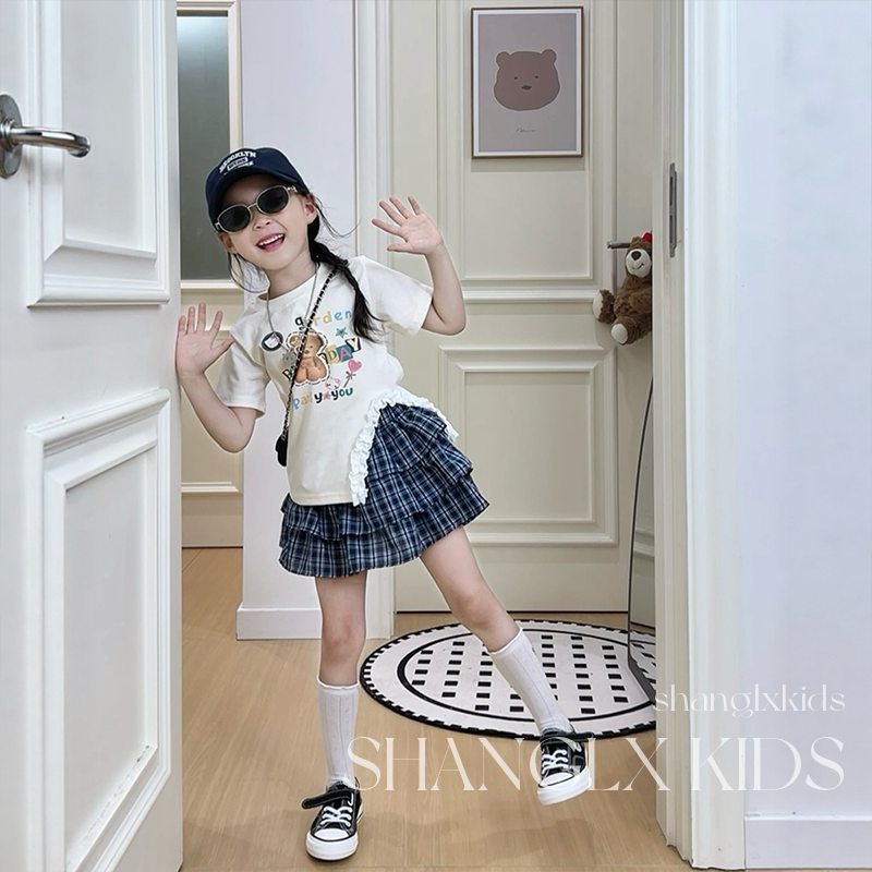 女童夏装套装格子蛋糕裙子夏季2026新款儿童高级感夏季韩系两件套