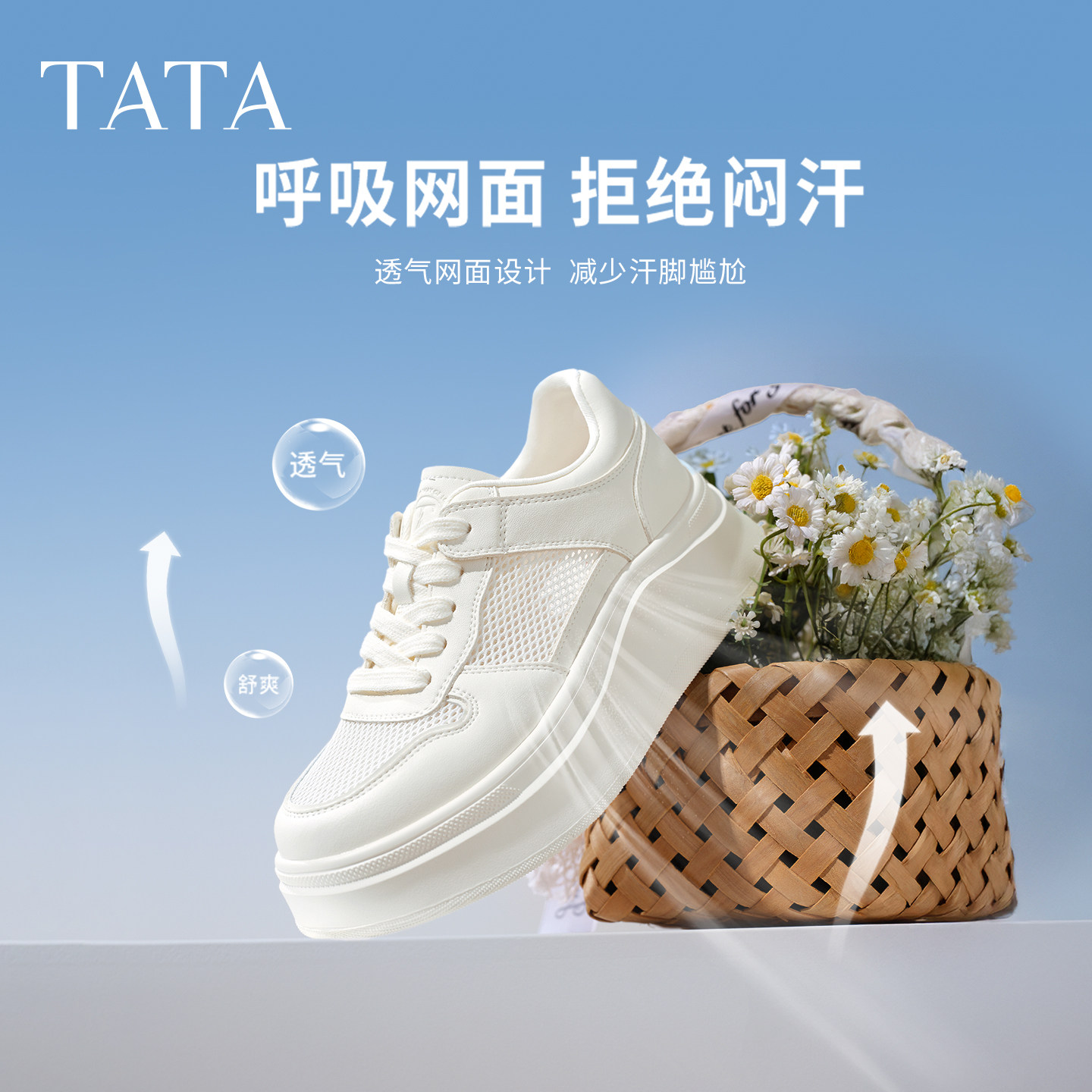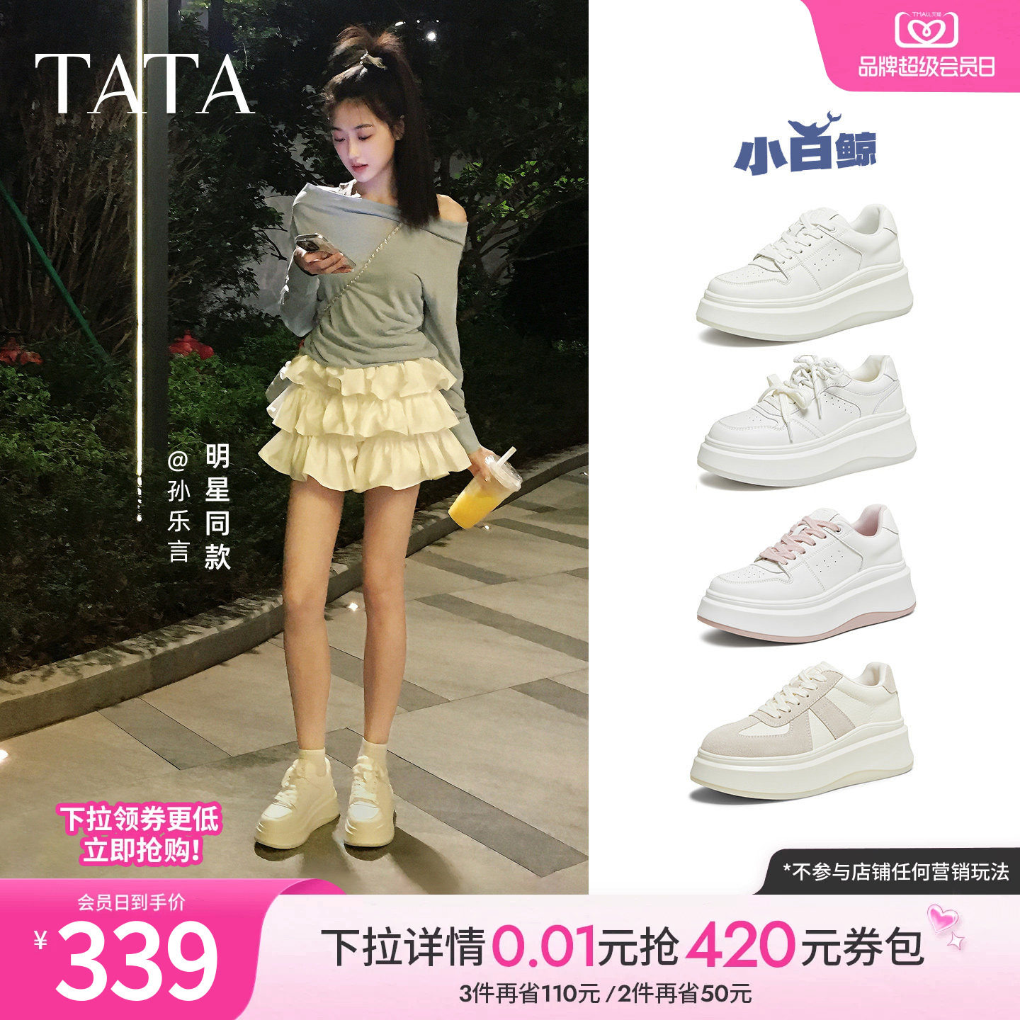 孙乐言同款TATA他她女鞋小白鲸板鞋厚底百搭鞋子增高休闲款学生鞋