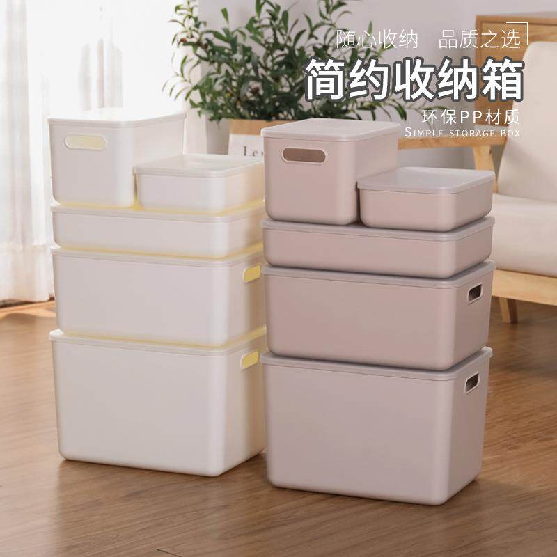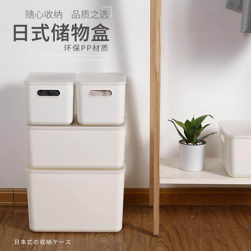 日式储物盒收纳箱塑料扁整理盒扁平小号杂物收纳盒桌面带盖收纳筐