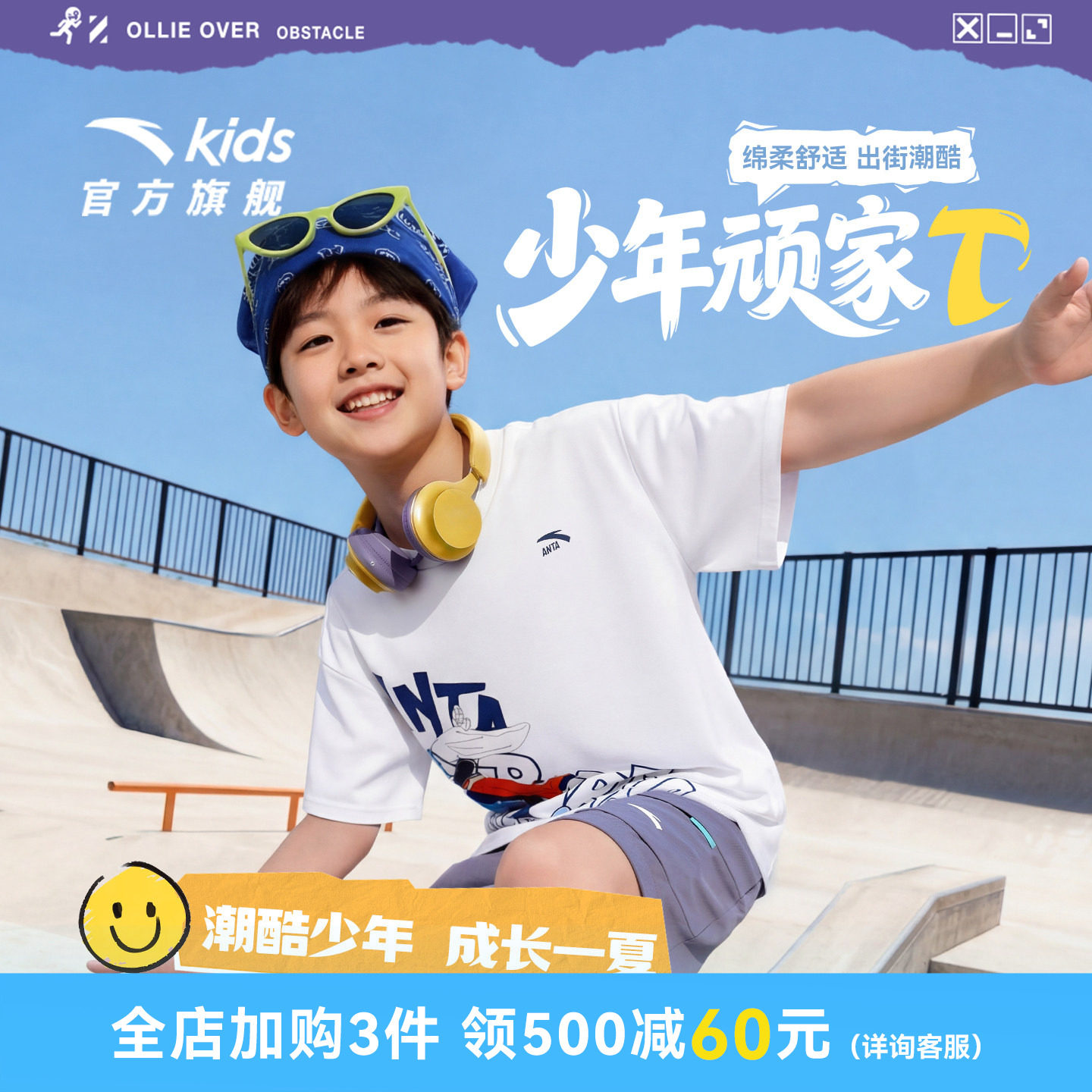 少年顽家安踏儿童男大童针织短袖2026年夏新款透气纯棉圆领短T恤