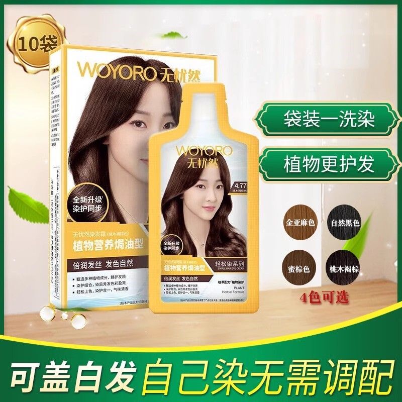 无忧然染发膏一洗黑植物营养焗油膏染发剂自然黑遮白发棕色染发霜