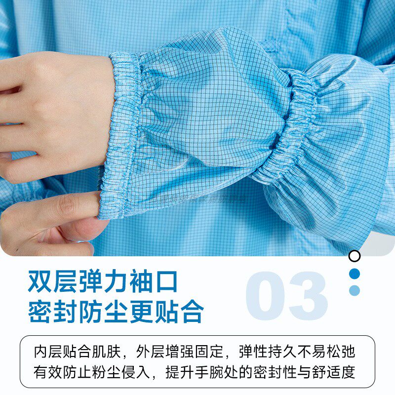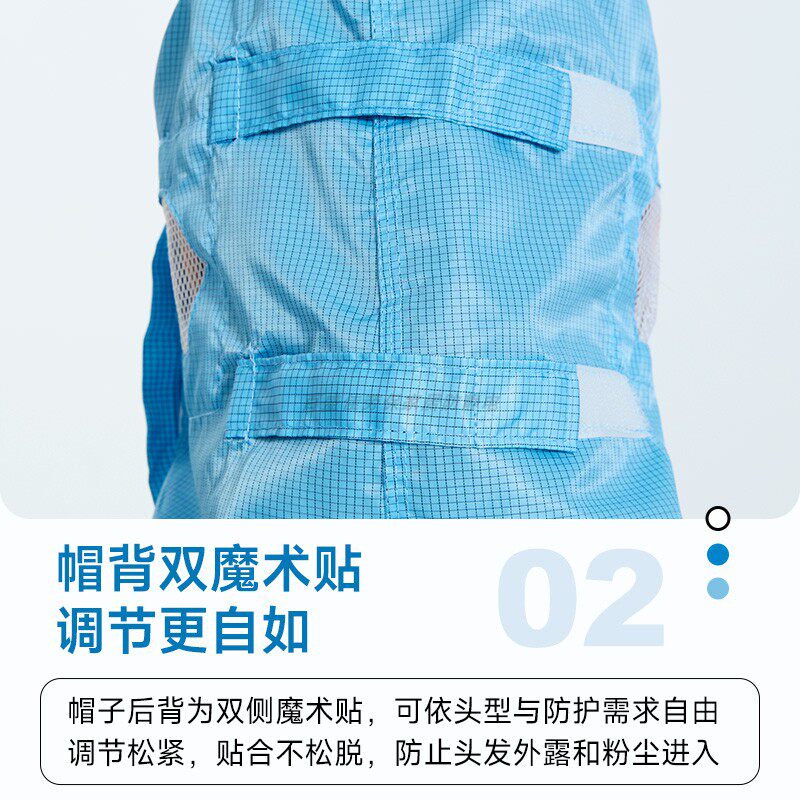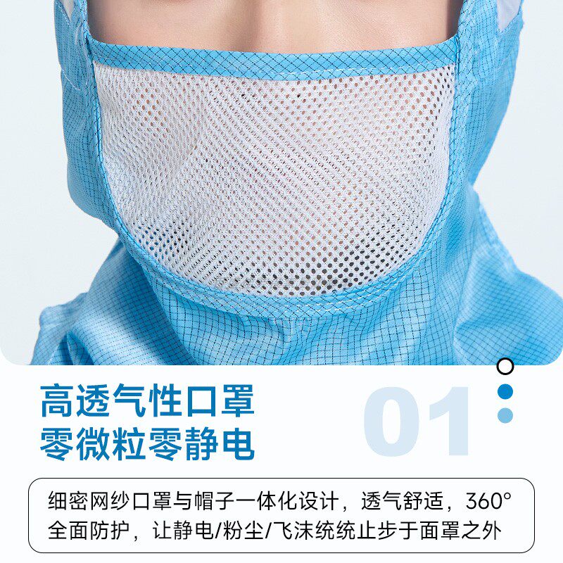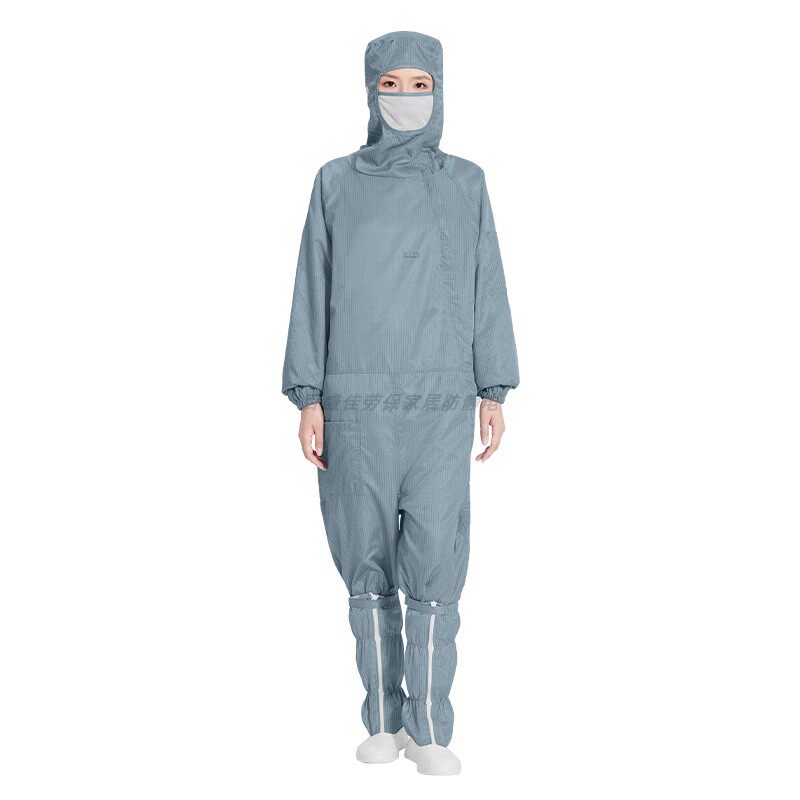 百级净化连体防静电无尘服斜裆部拉链口罩帽子一体灰色网格防尘服