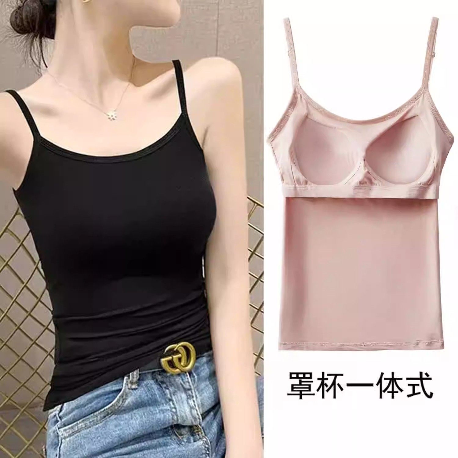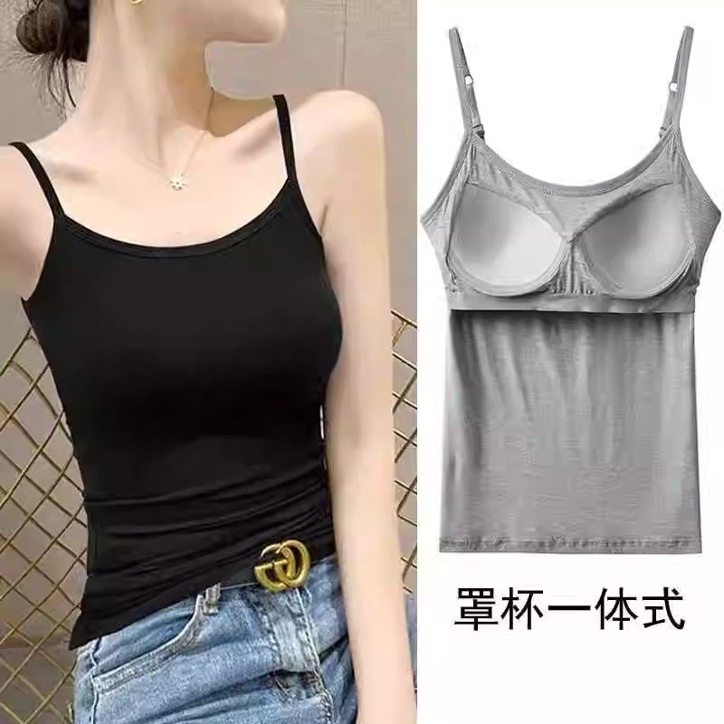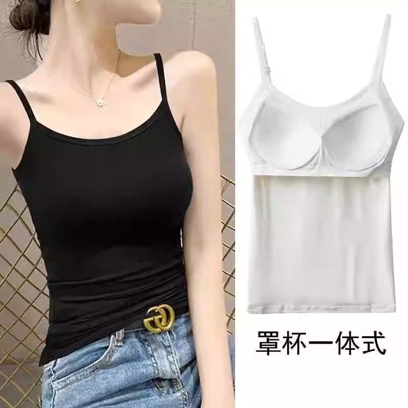 莫代尔棉吊带背心女士夏季带胸垫外穿内搭上衣瑜伽修身大码打底衫