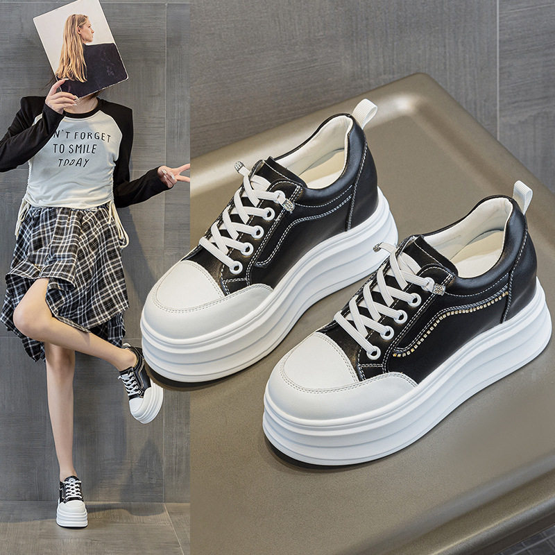 真皮内增高小白鞋女2026春季新款厚底松糕百搭休闲运动小个子板鞋