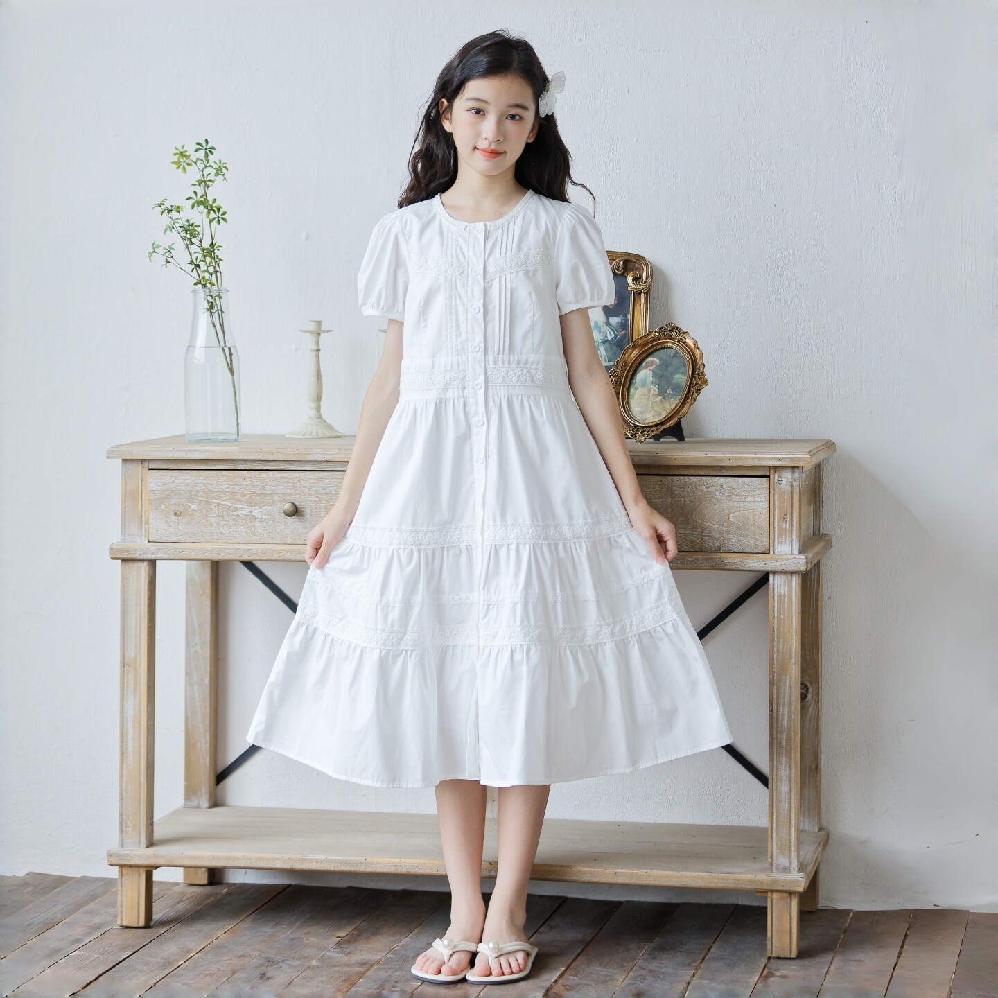女童法式白色蛋糕连衣裙女大童少女风清新初恋风森系文艺夏季长裙