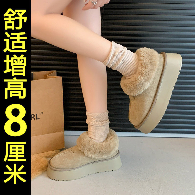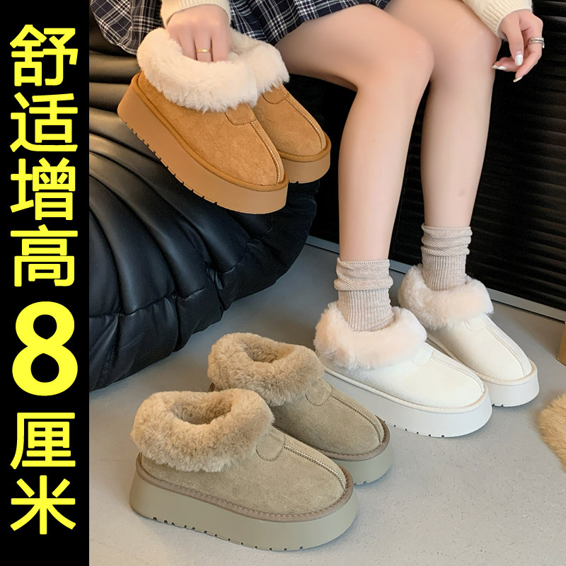 白色厚底加绒雪地靴女款2026冬季新款加厚保暖内增高东北毛毛棉鞋