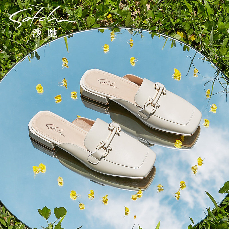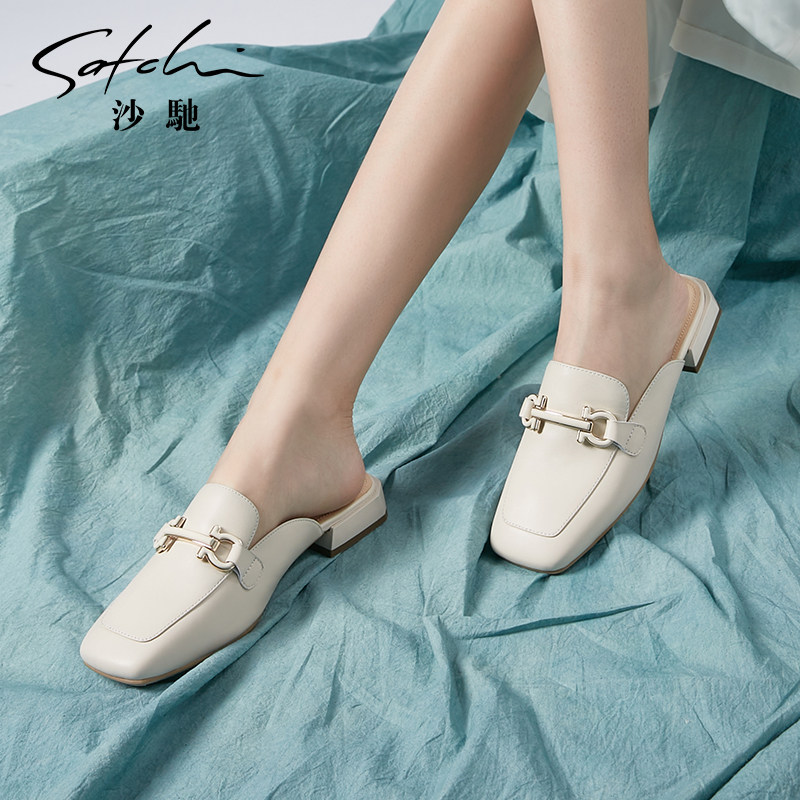 【断码清仓】沙驰女鞋夏季百搭时尚百搭粗跟中跟女士真皮女凉鞋