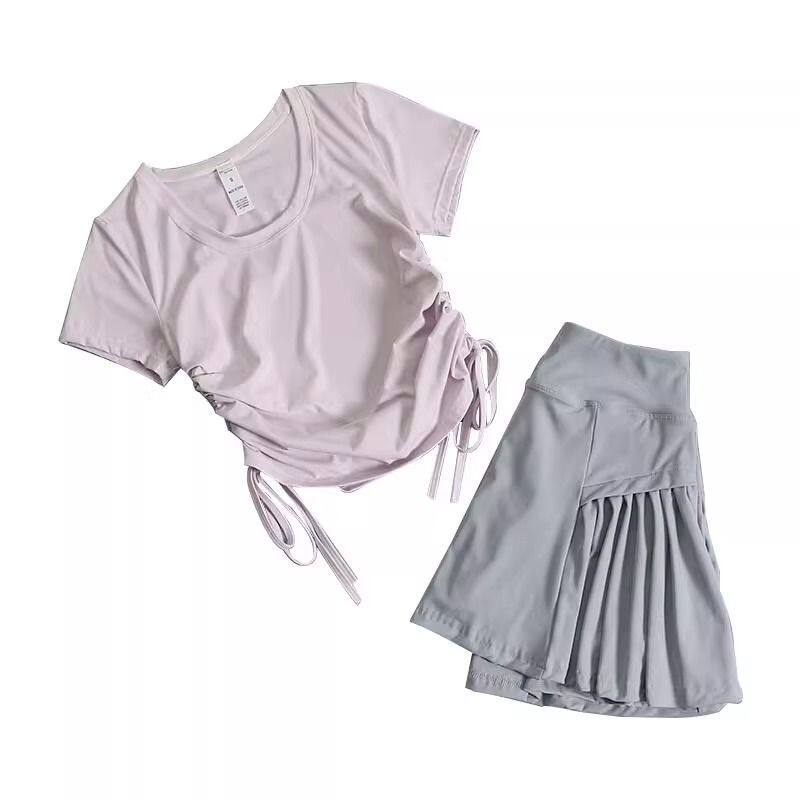 跑步运动套装女夏天专业速干训练羽毛球马拉松晨跑跳操健身瑜伽服