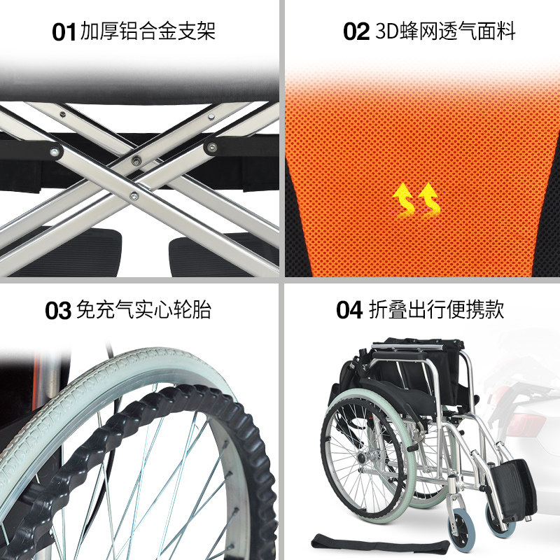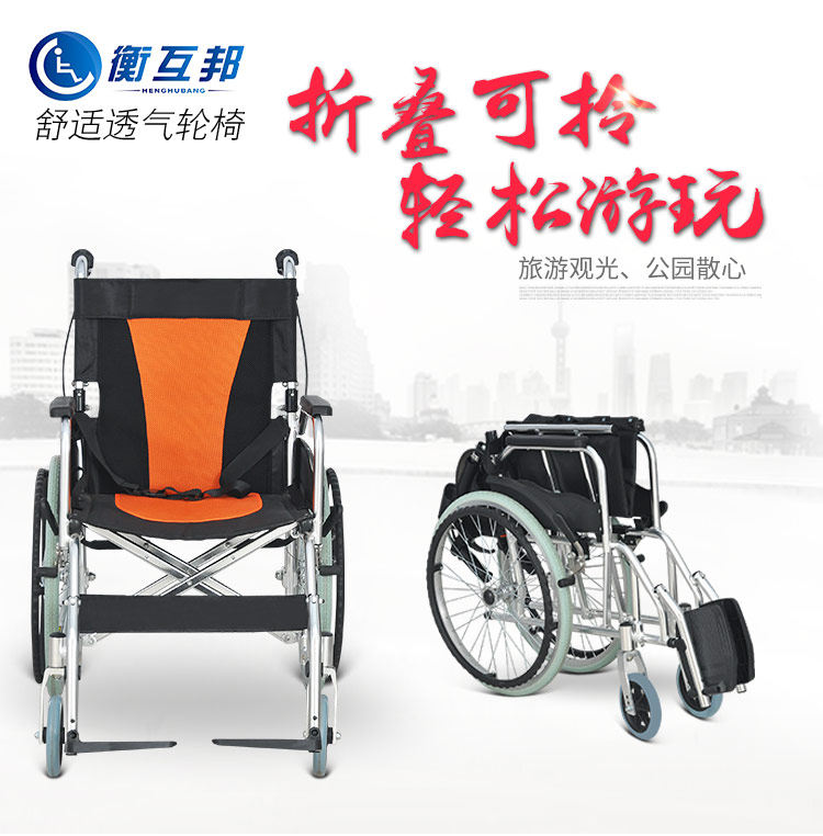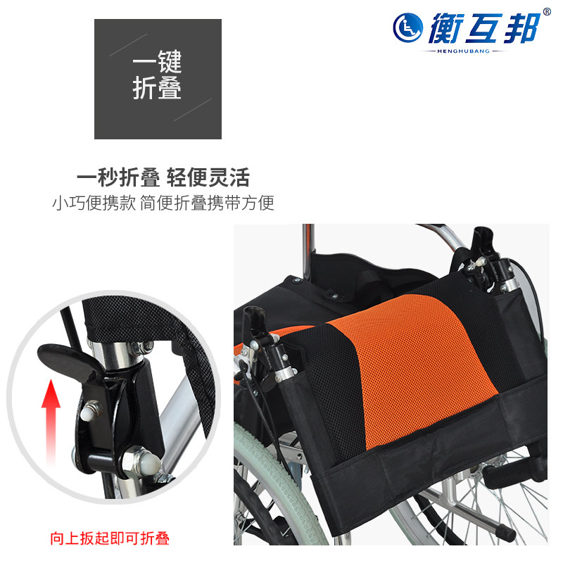 衡互邦折叠轮椅铝合金轻便代步车便携超轻老年老人残疾人手推车