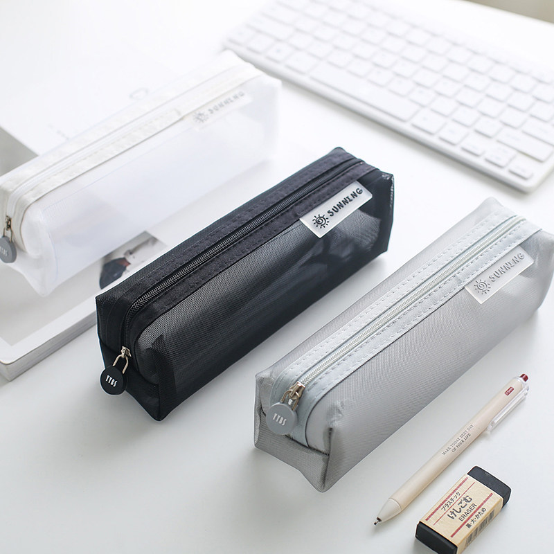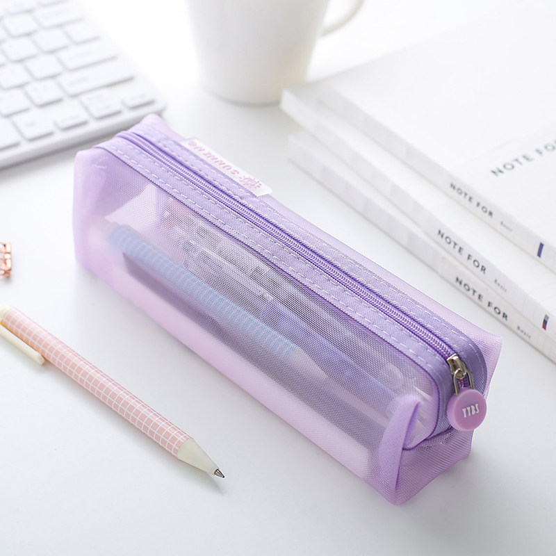 透明网纱笔袋学生文具袋铅笔袋简约小学生高颜值ins男女生初中生大容量笔盒铅笔盒白色蓝色紫色绿色纯色便携