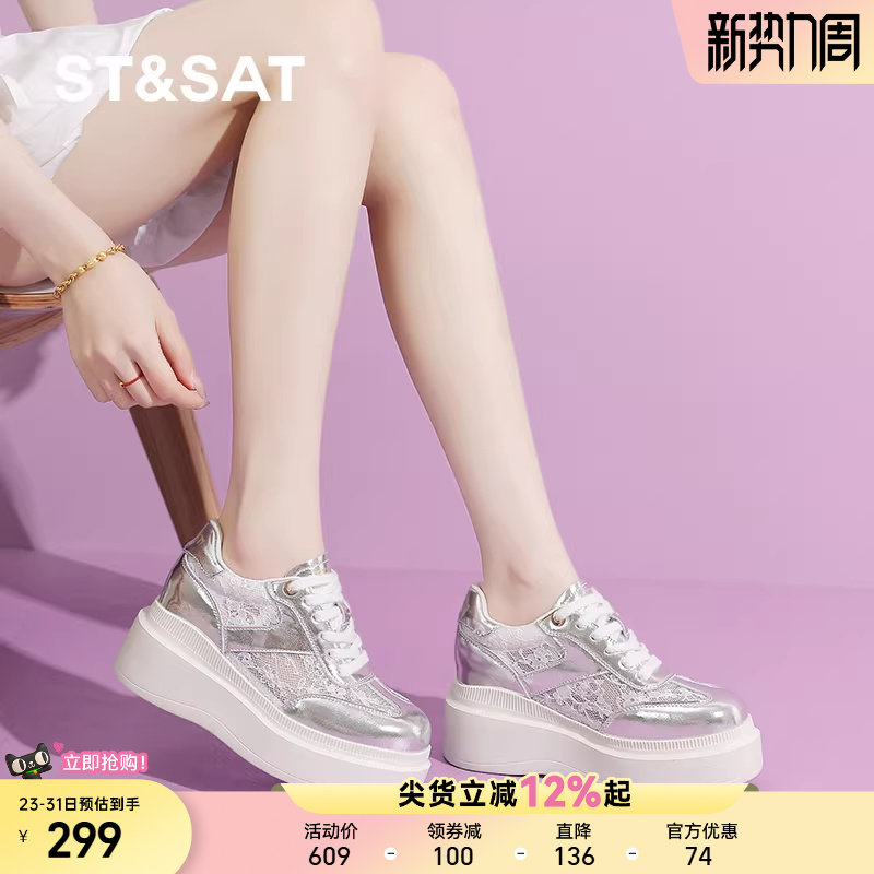 星期六厚底板鞋女鞋春夏款增高小个子银色高级感百搭时尚松糕鞋女