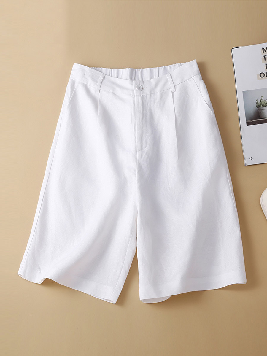 白色阔腿裤亚麻短裤女款夏季2026新款五分棉麻裤外穿西装休闲裤子