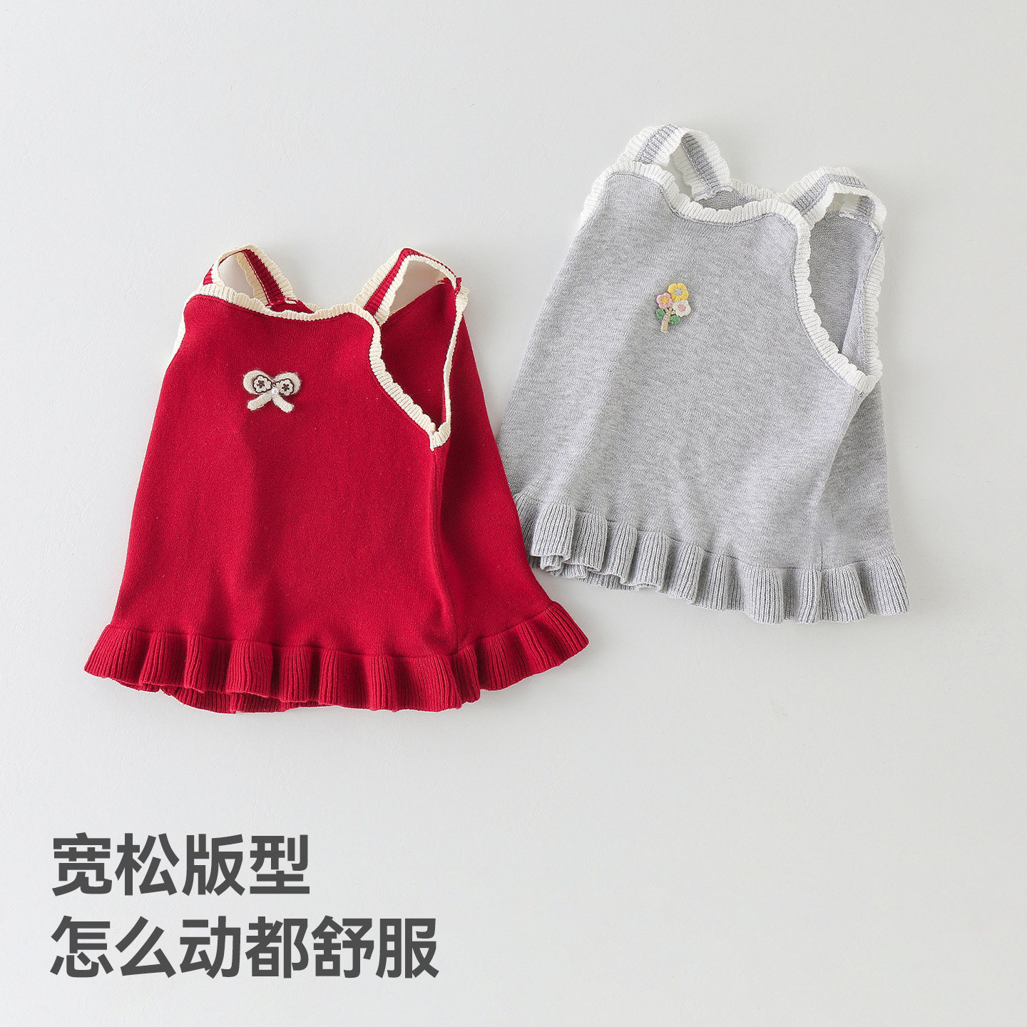 贝肽斯儿童针织毛衣2026春秋款女童背心针织吊带毛衣宝宝毛线衣S