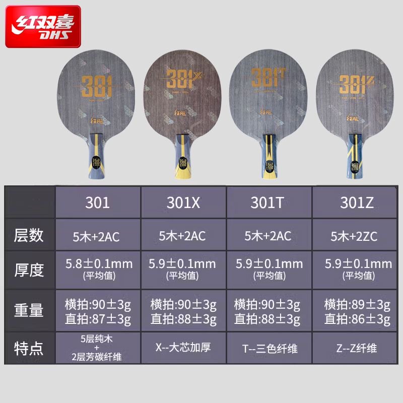 红双喜狂飙301X乒乓球拍底板301Z正品301T专业级7层碳素快攻芳碳